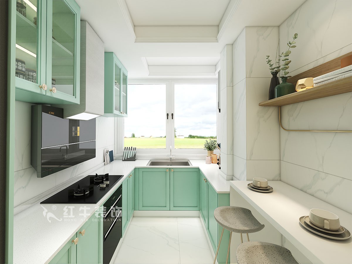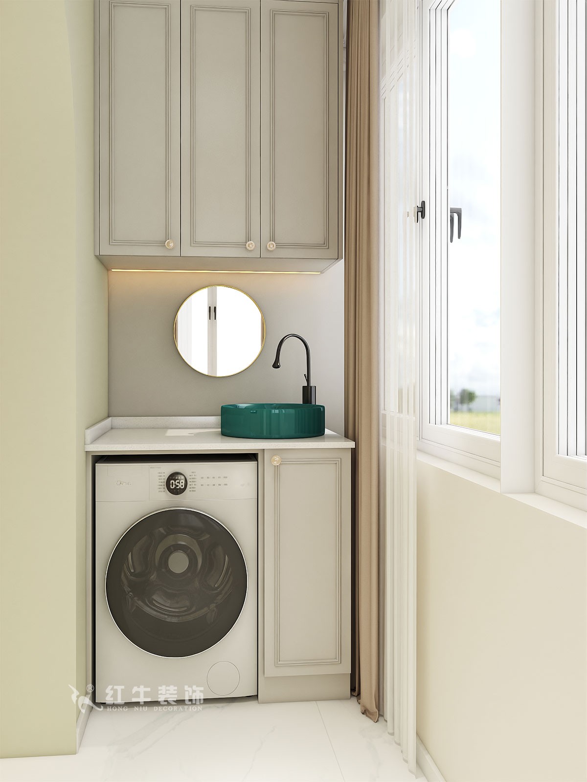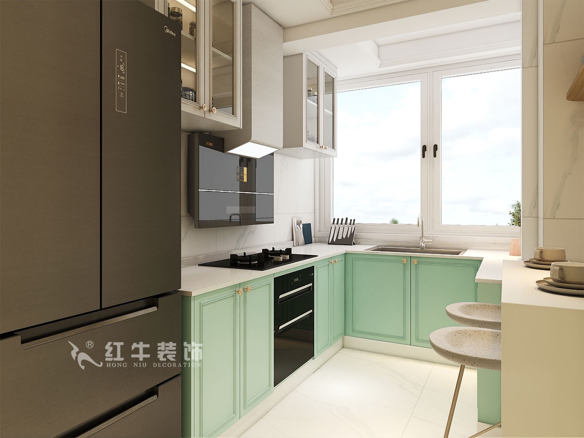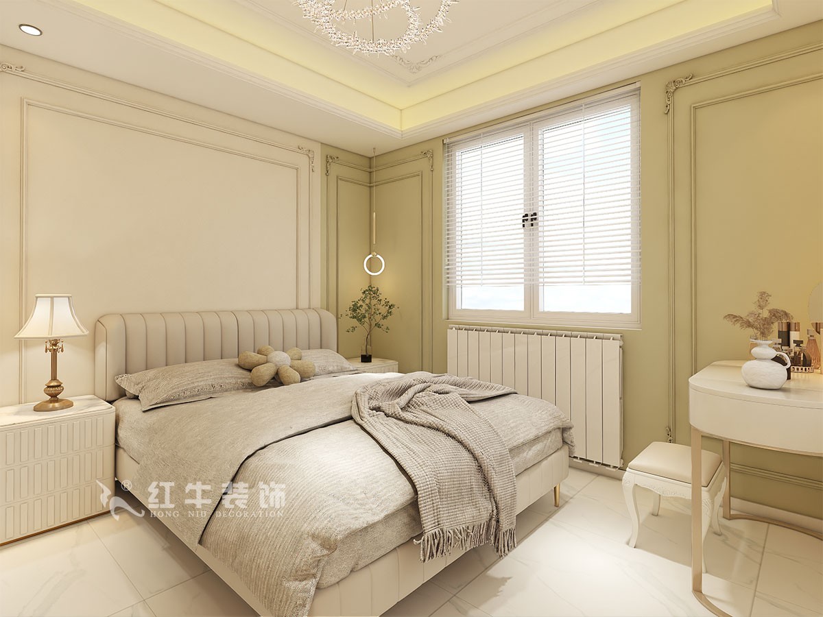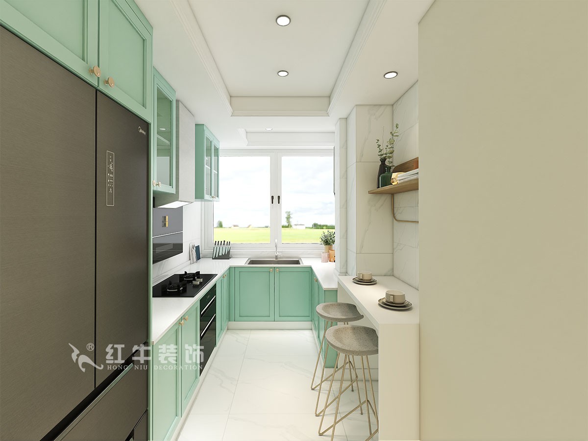 本案是本案客戶女兒回國臨時居住,以法式奶油風定義,網(wǎng)紅牛油果綠加上汝窯色,調(diào)節(jié)出歡快溫馨的效果,頂墻面線條增加立體層次感,設(shè)計上背景采用牛油果綠加上暖色的搭配,使空間看起來溫馨自然,利用原結(jié)構(gòu)的特點制作出三個圓弧,交相呼應。