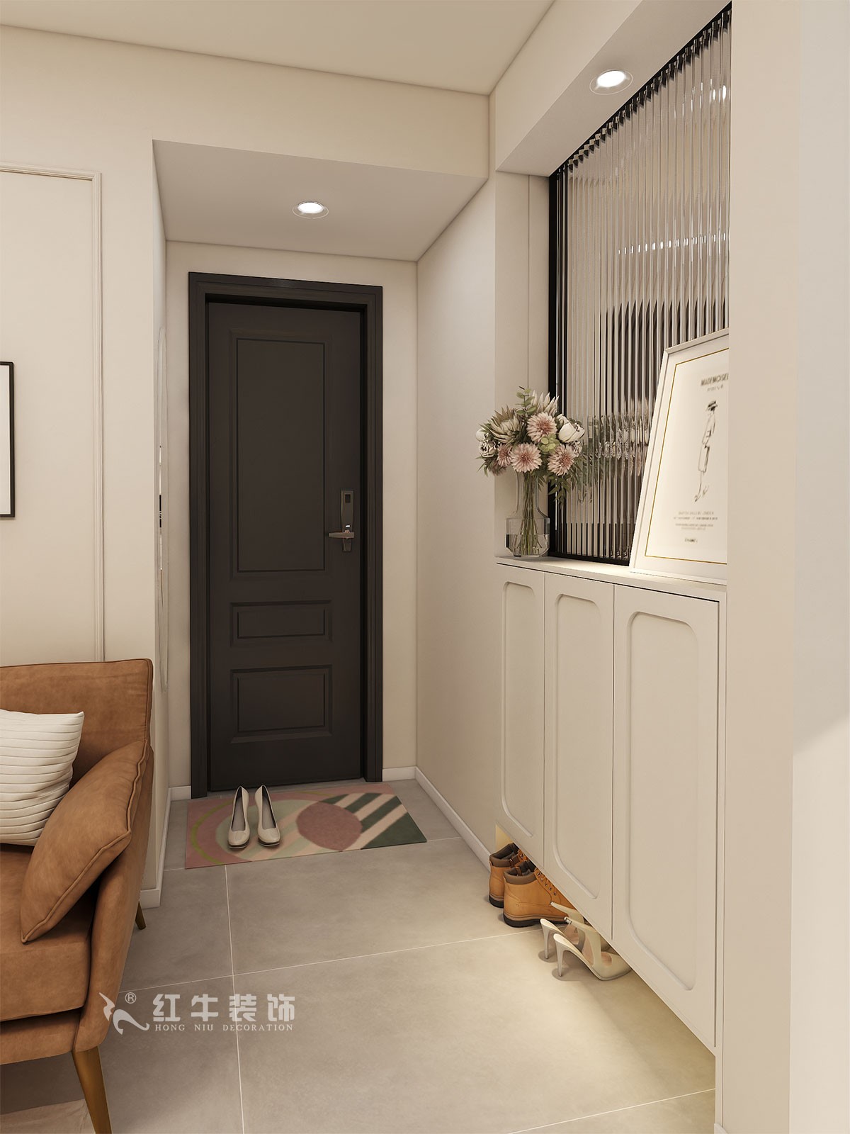 小兩口作為婚房使用的,利用了樓梯下面的空間做了儲物柜、電視柜,樓梯方向做了一個改動,使得進門不會直接對著樓梯口。利用廚房墻體做了一個半截鞋柜,不僅滿足的鞋柜的需求,上方長虹玻璃同時起到了一個裝飾美觀透光的效果。二樓整體格局做了重新的規(guī)劃,使得利用率更高,更合理。