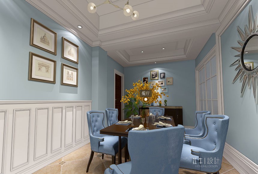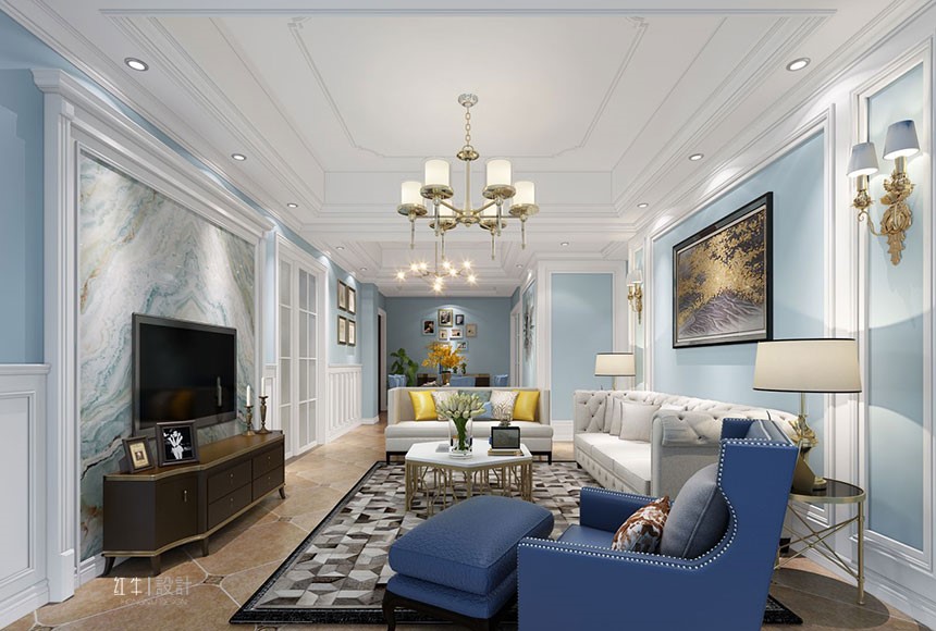 戶(hù)型屬于面積135平方,業(yè)主想在忙忙碌碌的一天之后,回到自己溫馨的屋子總是尋找一個(gè)安靜的角落享受家庭生活的溫馨,城市的五顏六色的生活迷惑了我們的眼睛,讓我們?cè)谫即蟮某鞘忻允Я朔较?,只有那么一個(gè)安靜的角落屬于我們,那就是我們的家。房間的室內(nèi)以米黃色為主,但處處透露出家的溫馨。客廳,餐廳,主色調(diào)為淡色,地面采用實(shí)木地板為主。此設(shè)計(jì)藍(lán)色調(diào)歐式家居風(fēng)格的這些元素也正好迎合了時(shí)下的文化資產(chǎn)者對(duì)生活方式的需求,即:有文化感、有貴氣感,還不能缺乏自在感與情調(diào)感