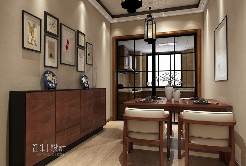 此案設(shè)計采用了中式風(fēng)格為主,為使得整個空間更豐富增加了其他元素在里面。