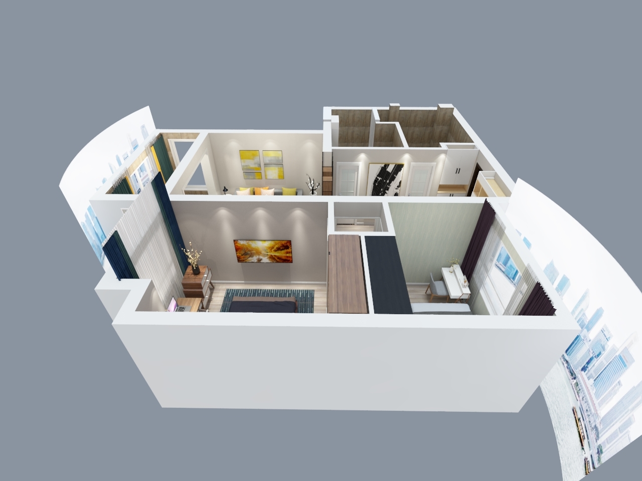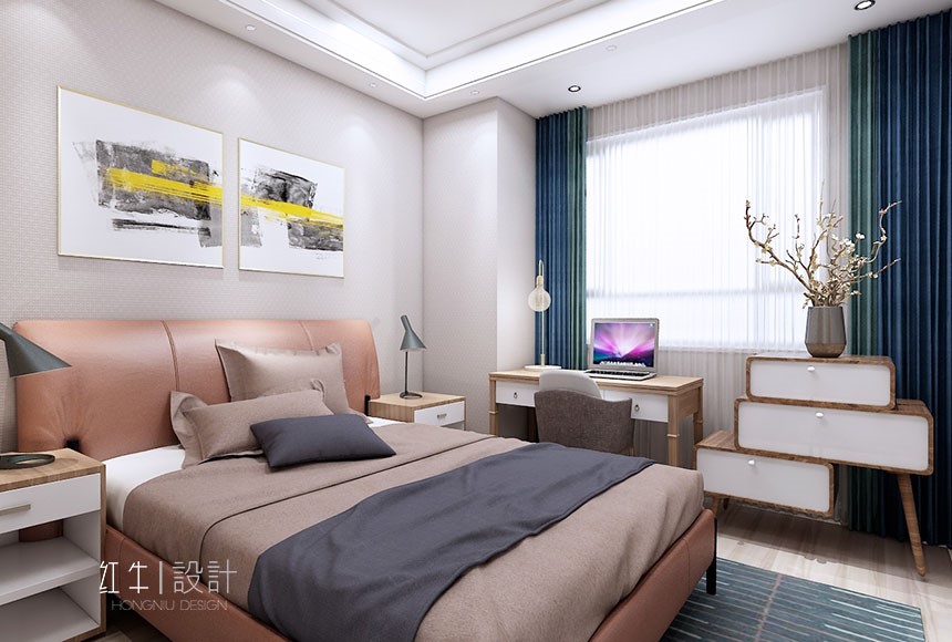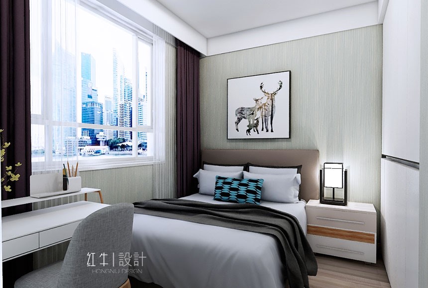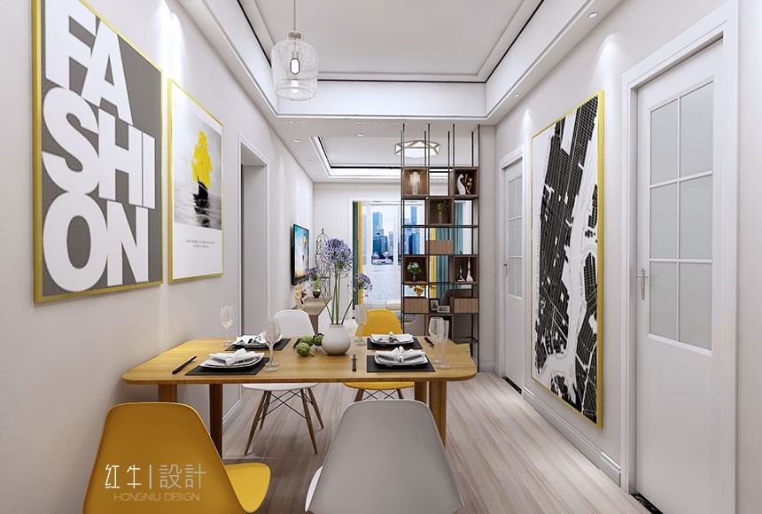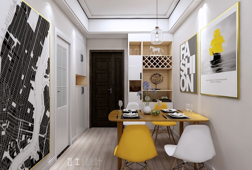 現(xiàn)代人的生活習性,喜歡簡單明了不拖泥帶水的東西,都市的快節(jié)奏,讓人們希望在房子里找到家的溫馨。客廳淺灰色的墻面讓人有安靜下來的體驗,木色的家具,加以搭配撞色的門板,不會有原始的呆板。木色的家具配以時尚的撞色,大膽又不失規(guī)矩,甚是合適。大量的留白,使空間更加時尚和安靜。房間木色的拼色和皮質(zhì)的碰撞,配以稍深的墻紙,溫暖又清新,讓主人能在疲憊一天的工作中,舒服的進入夢鄉(xiāng)。次臥朝北,運用淺綠色的墻面,將空間帶進自然,