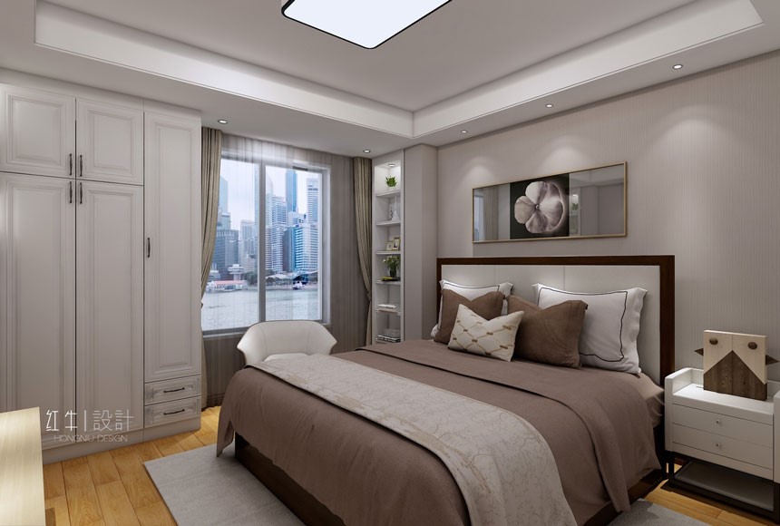 溫馨大方的空間設(shè)計,家里三代人居住,采用現(xiàn)代簡約風(fēng)格,衣帽間的設(shè)置增加了儲物空間。明暗對比,色彩碰撞。給人們安靜祥和的體驗,試想一天疲憊的下班,在客廳沙發(fā)上看著陽臺窗外的風(fēng)景,十分愜意。
