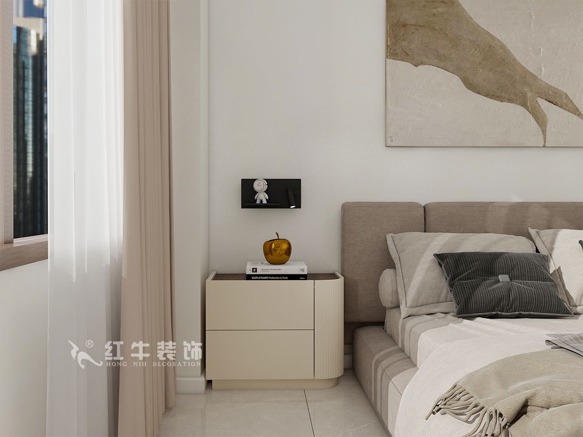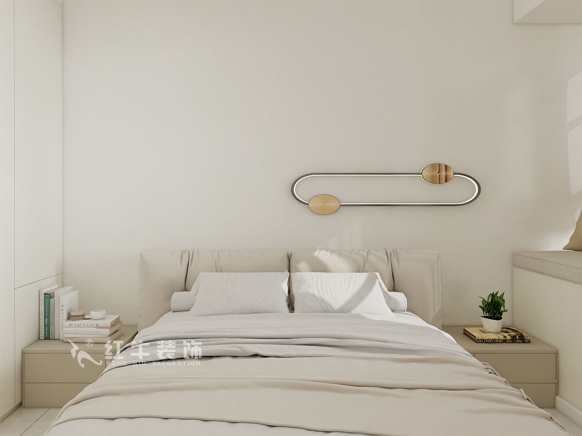 臥室說(shuō)明:搭配大面積的白色定制衣柜,床頭的光源以不同形勢(shì)呈現(xiàn),既滿足不同燈光需求,又恰到好處地起到了裝飾效果,使整體臥室空間呈現(xiàn)明亮、溫柔的舒適狀態(tài)。