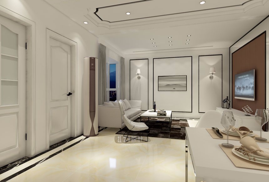 本項目整體風格為現(xiàn)代簡約,總體為簡單大方的線條及裝飾,多以功能性多元化設計為主,拋開所有繁復的裝飾,回歸真實簡單溫馨的都市色彩。設計元素:簡單、環(huán)保、舒適、大方。房屋的主人為年輕的夫婦,本案的設計主題以“簡約、環(huán)?!睘橹行?,利用柔和的色彩塑造溫馨舒適的空間。