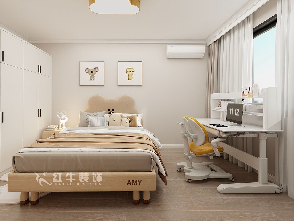 客戶是一對小夫妻帶個小孩和老人居住,原始戶型比較方正,功能分區(qū)合理。衛(wèi)生間做干濕分區(qū),這樣使用更方便。兒童房要具備休息和學習功能,盡量留空作為小朋友的活動空間。整體裝修簡潔明快,沒有過多的裝飾。