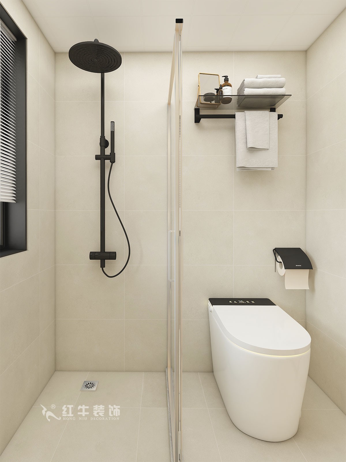 衛(wèi)生間說(shuō)明:整體色彩搭配干凈、大方,選擇大尺寸淺灰色瓷磚上墻,氛圍感溫馨感滿滿。