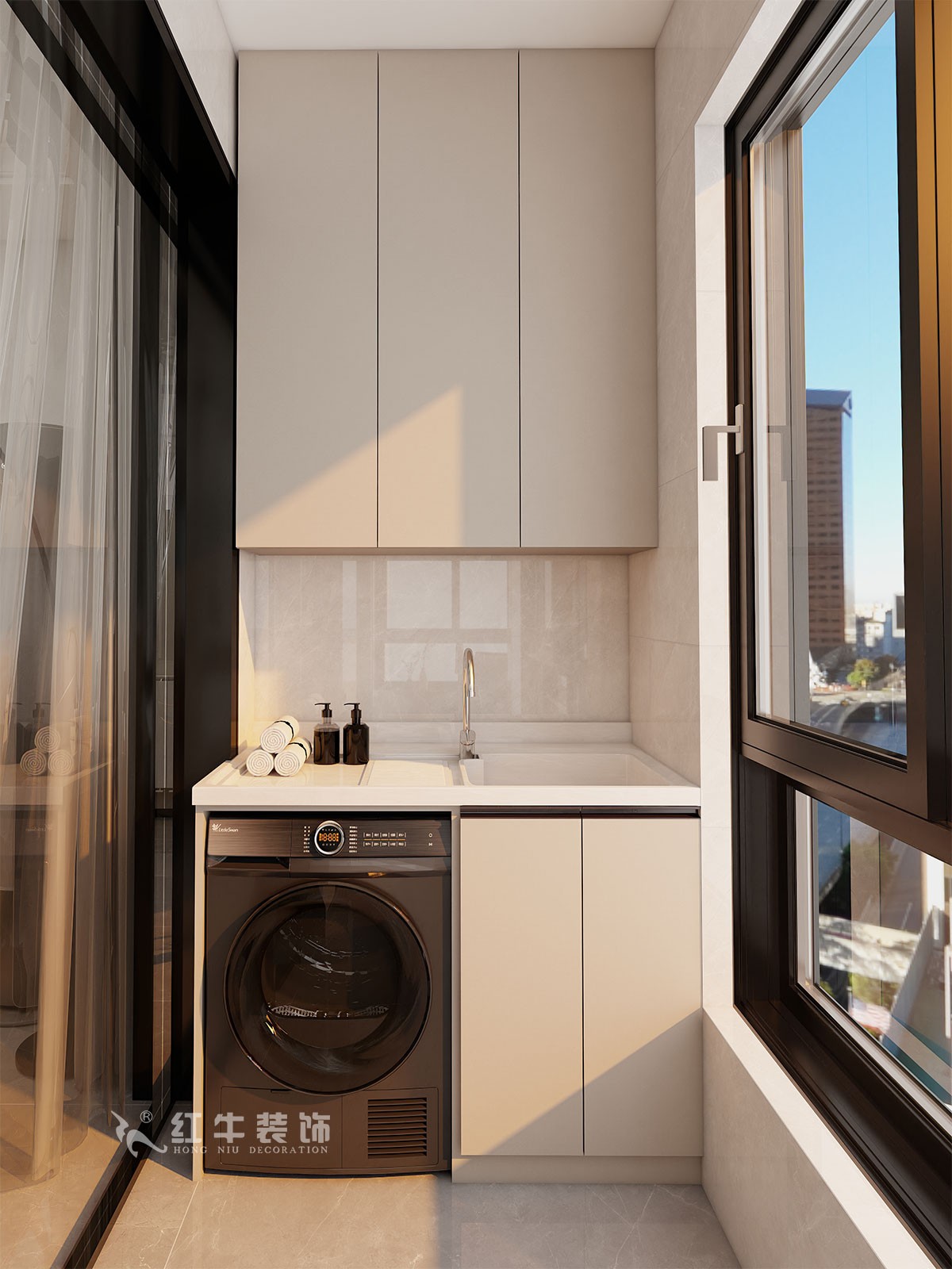 奶灰色是客戶(hù)非常追求的色彩,加上地板的質(zhì)感,相得益彰。