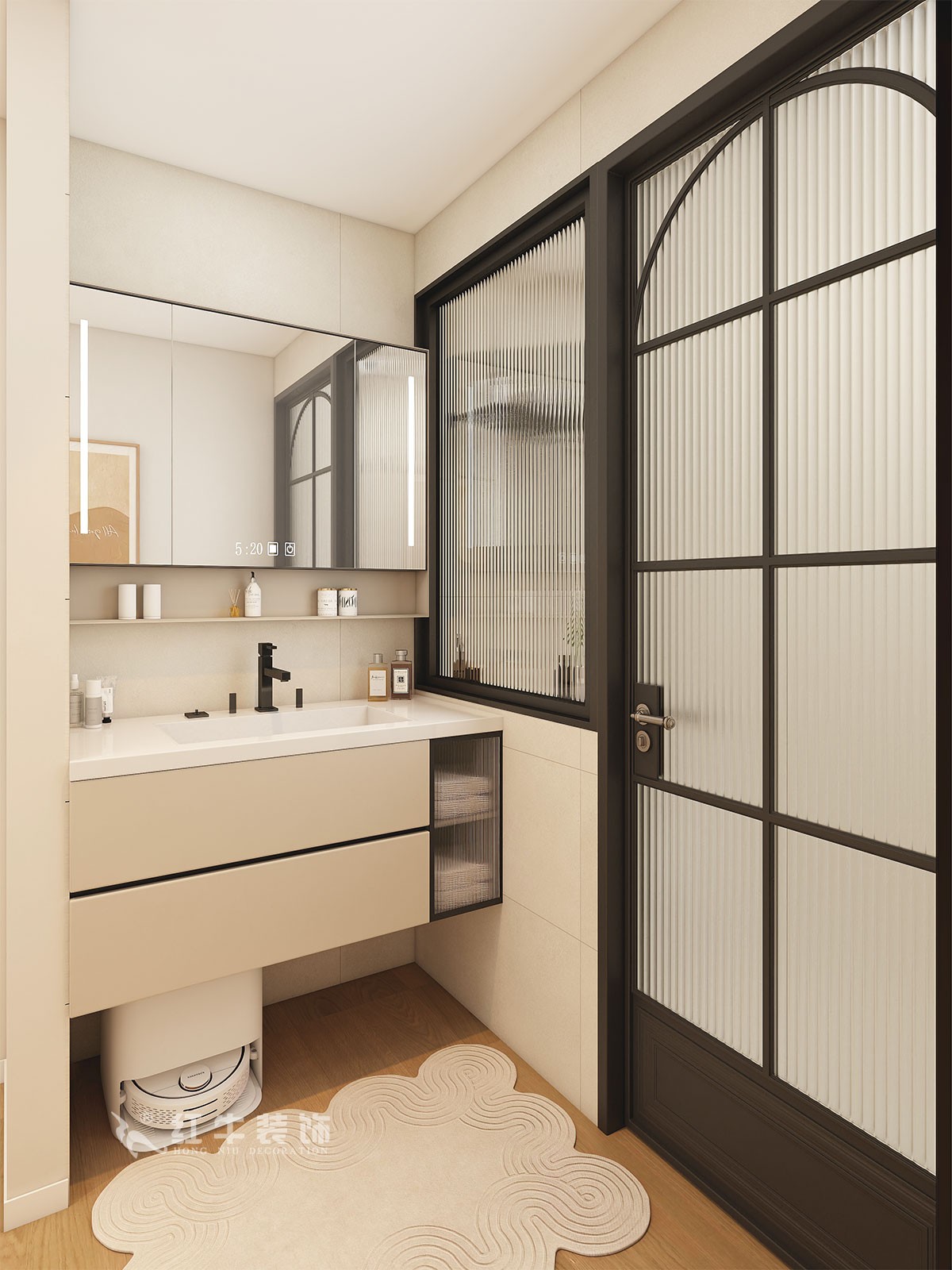 衛(wèi)生間說明:選擇整體色彩搭配干凈,大方,選擇大尺寸淺灰色瓷磚上墻,氛圍感溫馨感滿滿。