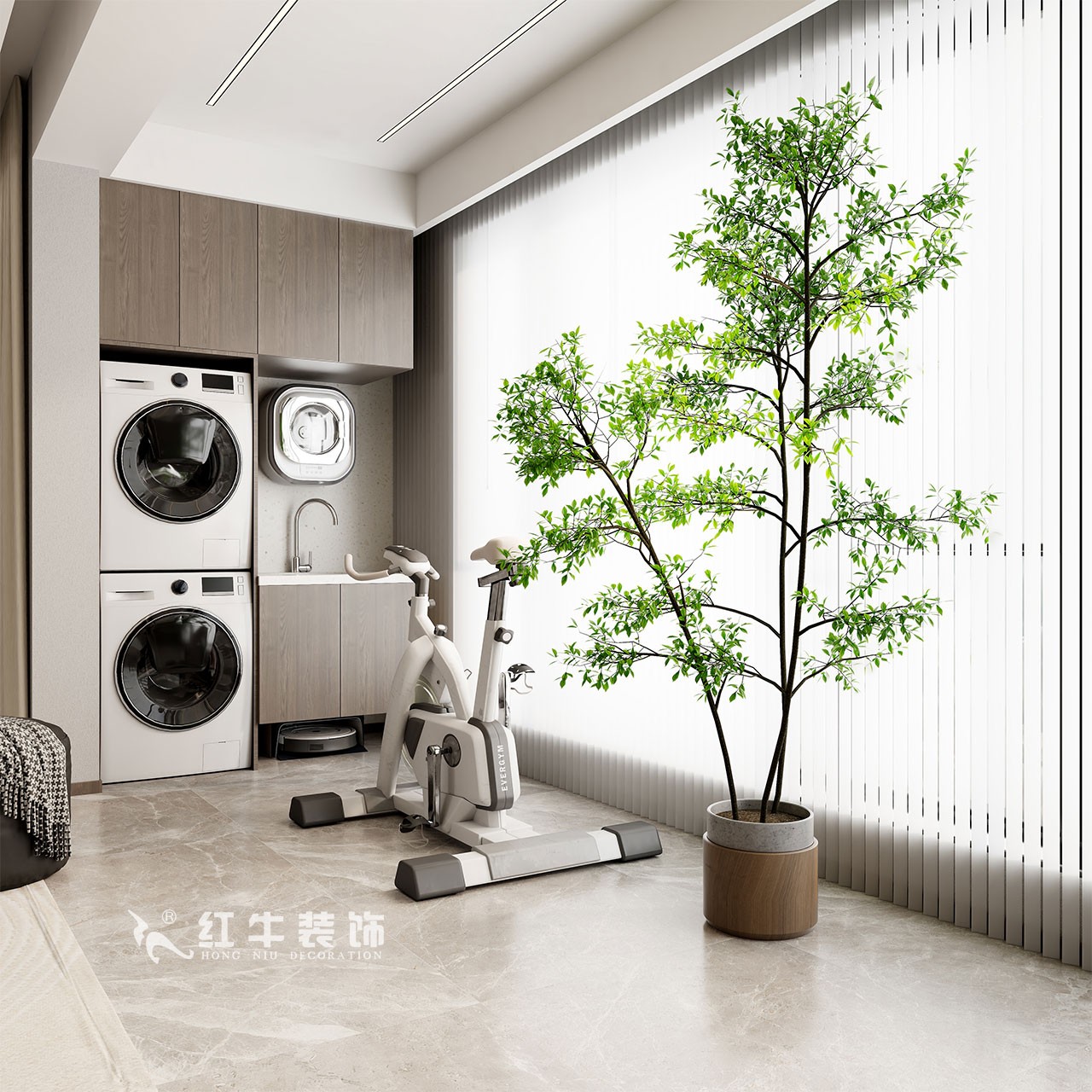 多功能大陽臺,滿足業(yè)主洗曬、儲物、學(xué)習(xí)辦公、鍛煉等不同需求,搭配一個生機勃勃的綠植,為整體空間注入活力。
