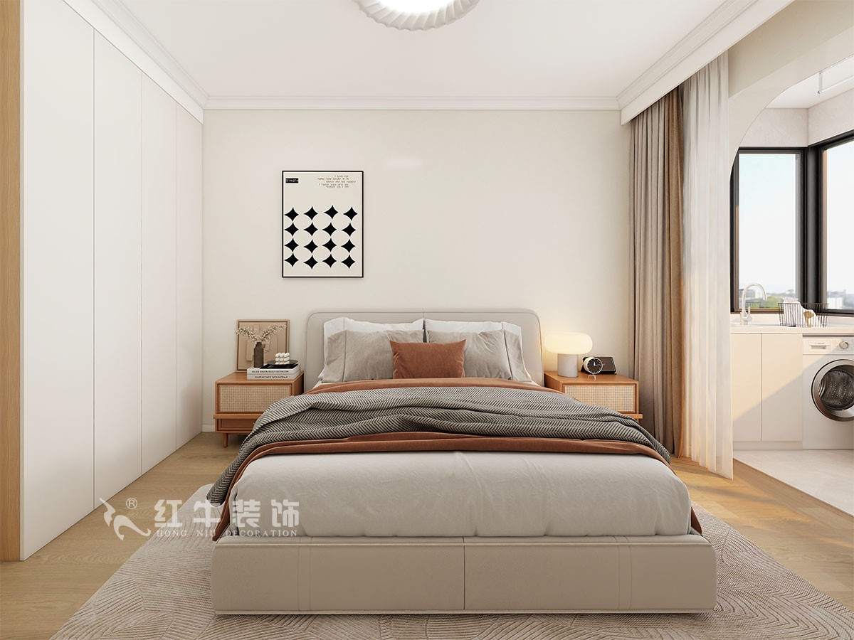 臥室說明:搭配大面積的白色定制衣柜,床頭的光源以不同形勢呈現(xiàn),及滿足不同燈光需求,又加到好處的起到了裝飾效果,使整體臥室空間呈現(xiàn)明亮,溫柔的舒適狀態(tài)。
