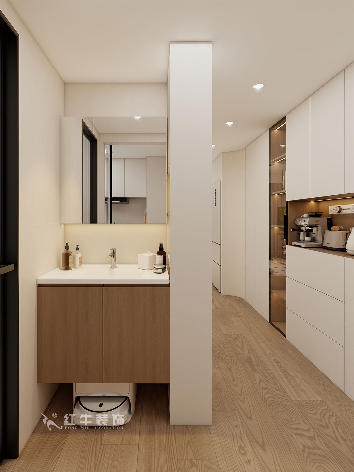 餐廳說(shuō)明:餐邊柜擴(kuò)充了廚房?jī)?chǔ)物的不足,也提升了適合家庭的生活質(zhì)量。