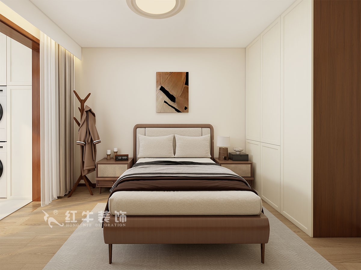 整體裝修簡(jiǎn)潔明快,沒(méi)有過(guò)多的裝飾,增加了入戶的儲(chǔ)藏柜,小臥室以儲(chǔ)藏功能為主,兼顧了客房功能。