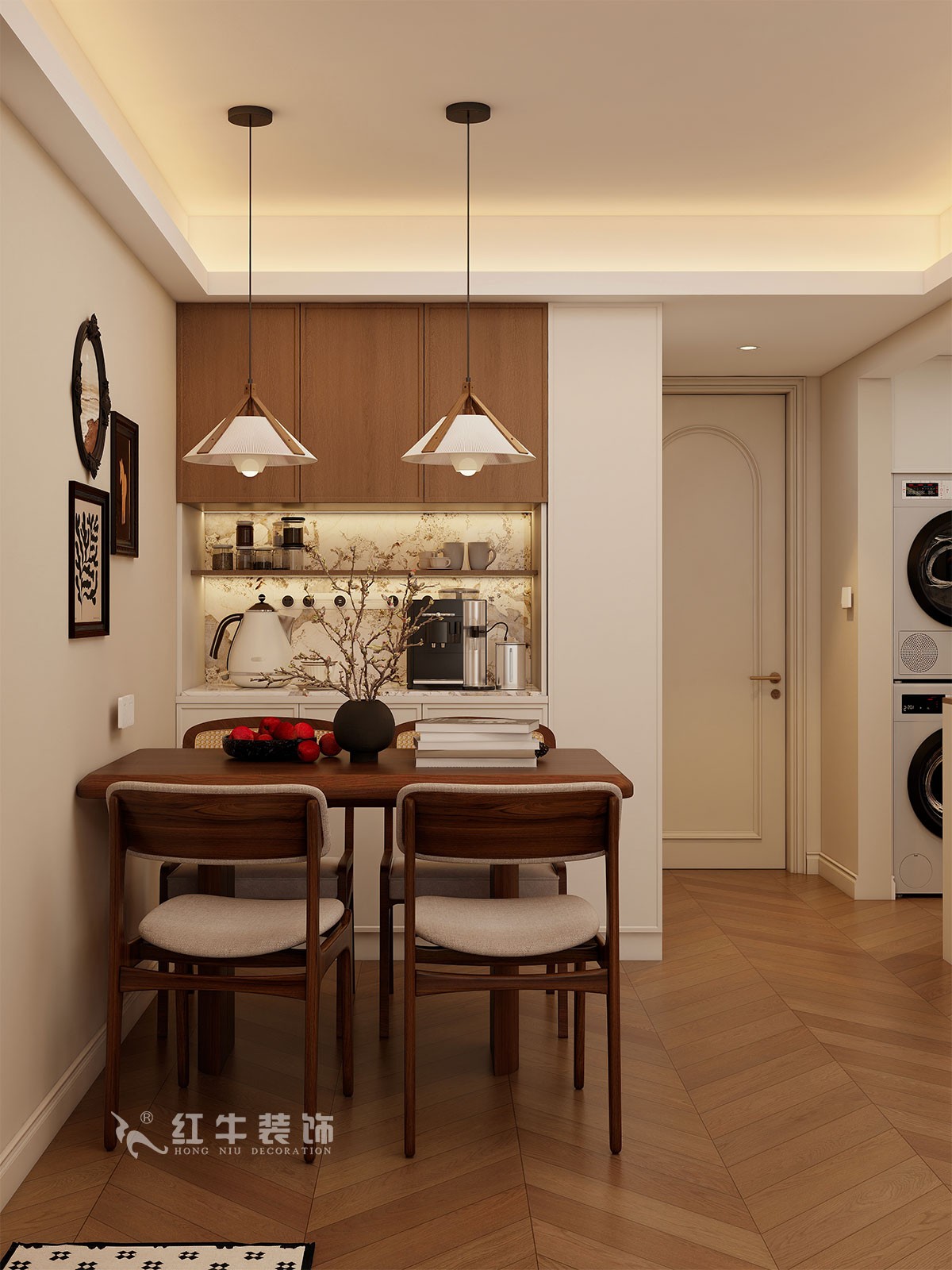 客餐廳空間很規(guī)整,通過細(xì)節(jié)的處理打造輕松舒適的中古風(fēng)居家環(huán)境。