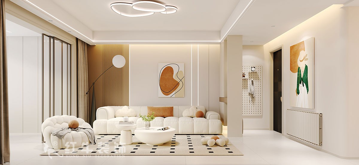 本案設(shè)計(jì)在跟客戶溝通后整體風(fēng)格定位為現(xiàn)代奶油風(fēng)格。