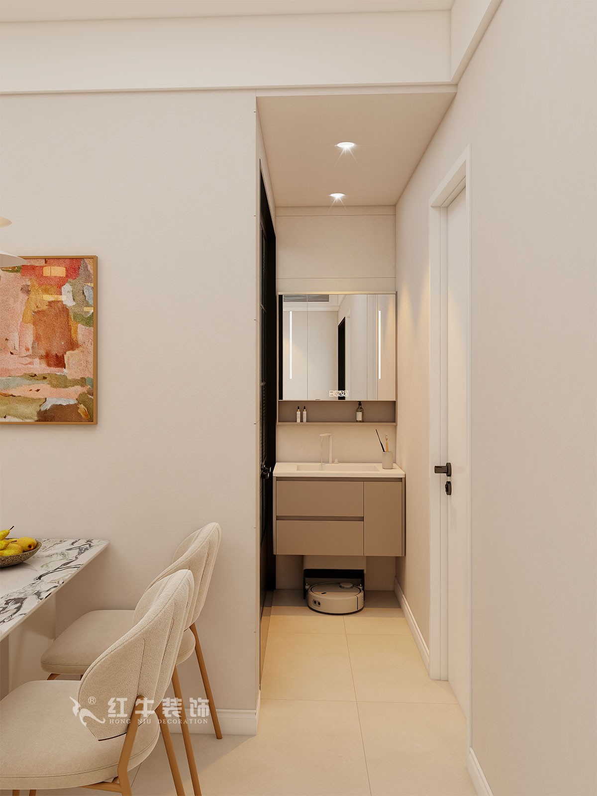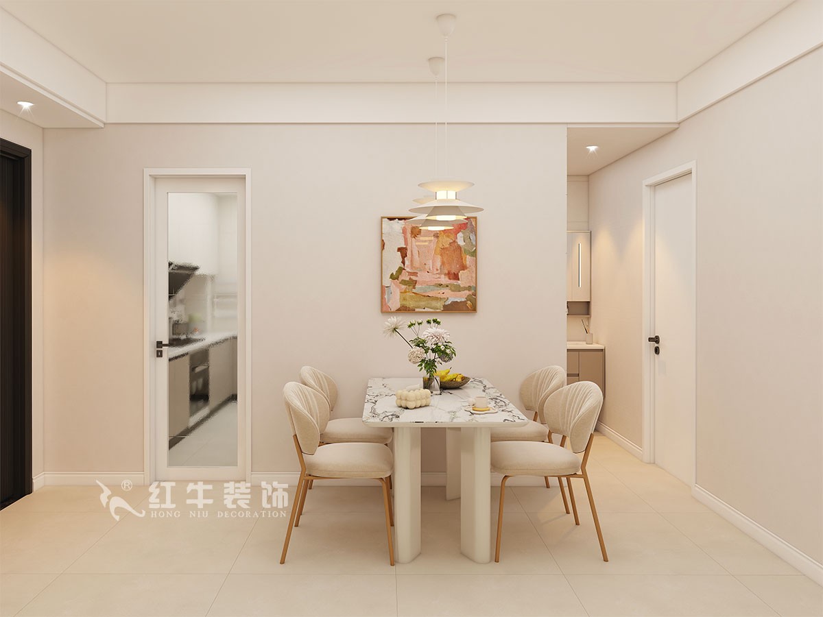 材質(zhì)選擇:地面通鋪柔光磚,墻面使用乳膠漆,選擇線條簡(jiǎn)潔的家具,如沙發(fā)、茶幾、餐桌椅等,搭配復(fù)古燈具、裝飾畫(huà)和綠植,增添藝術(shù)氣息。