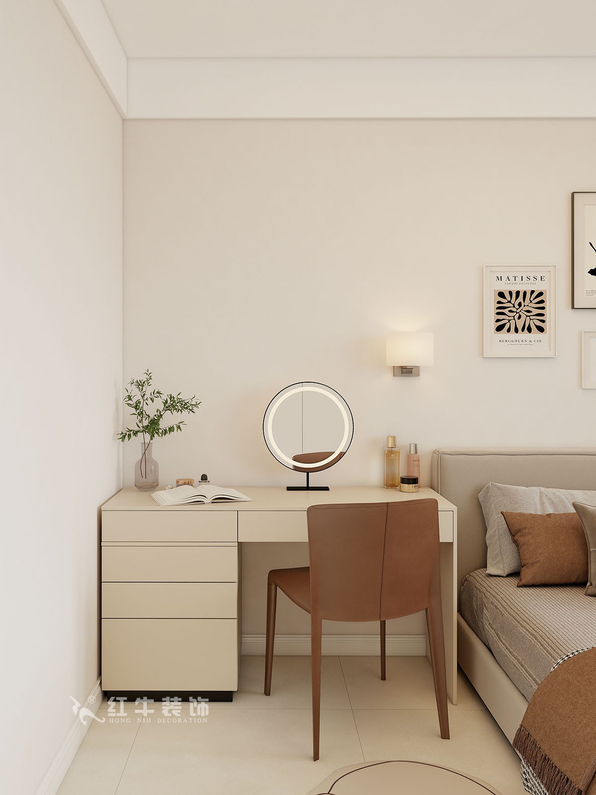 色彩搭配:以暖色調(diào)為主,墻面采用米色、淺咖等柔和色彩,搭配深木色家具,營(yíng)造氛圍。