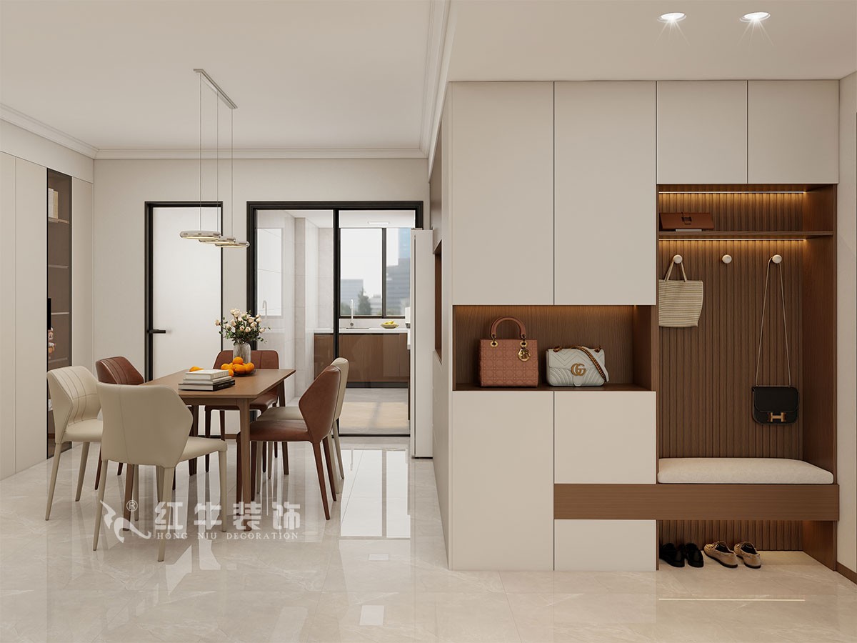 入戶門廳作了穿鞋凳的設計,鞋柜連接餐邊柜,增加儲物空間的同時更加簡約大氣,其余空間不做墻體改造,功能分區(qū)盡可能多做一些儲物柜,不僅滿足了儲物的需求,同時使得空間更加豐滿、大氣、時尚。