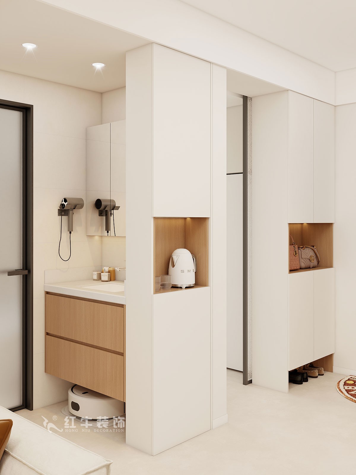 本案簡約風(fēng)格,客戶需求增加儲物功能,在設(shè)計過程中方案墻體改動不多,可以滿足基本需求。擴(kuò)大空間增加儲物功能,能夠滿足客戶所提需求。