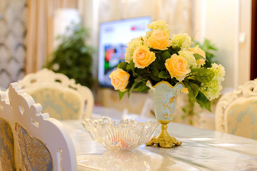客餐廳采用線條,配以的石材點(diǎn)綴,拓寬客餐廳區(qū)域的空間感。墻面采用對稱的實(shí)木線條,與頂面的十字石膏線相呼應(yīng),不同材質(zhì)的組合營造尊貴典雅的生活品質(zhì),細(xì)膩的詮釋了空間的浪漫魅力。
