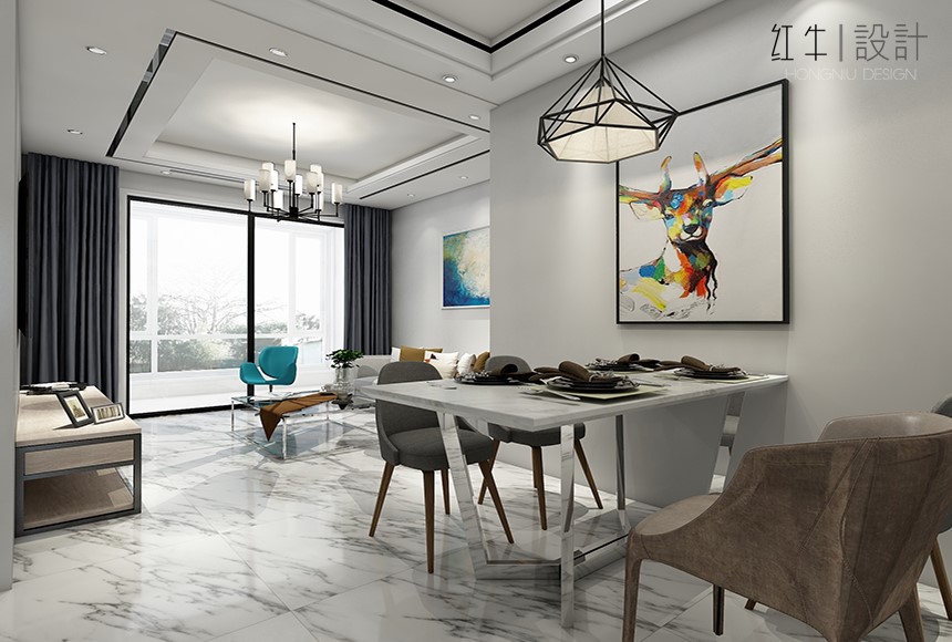 在做效果圖的時候也是從減色彩,減裝飾畫,加塊面顏色去權(quán)衡設(shè)計效果。從而營造一個輕松,舒適的居家。
