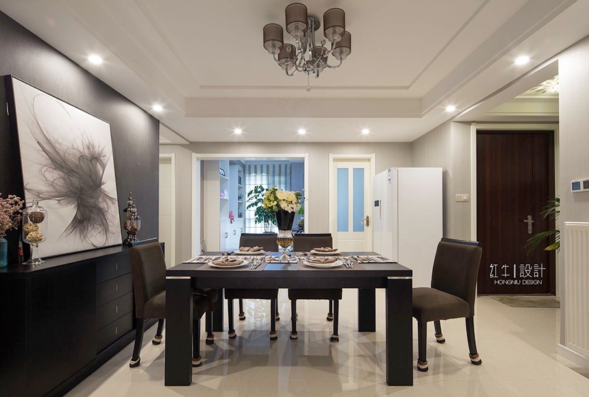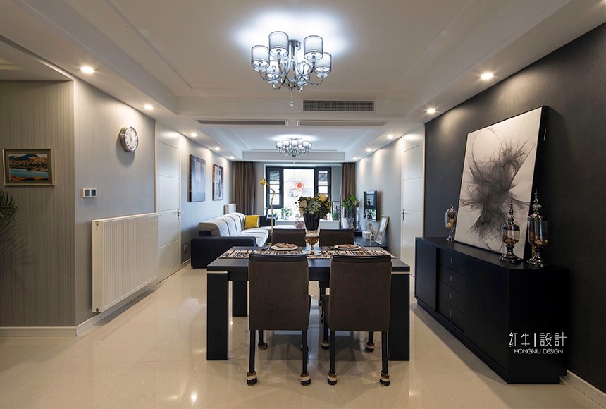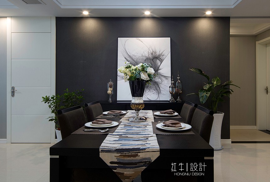 “寧動”設(shè)計(jì)主題即為“寧靜中的舞動”來源于客戶對裝修簡約而不簡單的要求,營造一種空間氛圍,體現(xiàn)主人公的氣質(zhì)與生活品質(zhì)。設(shè)計(jì)氛圍定位時(shí),避免了過于現(xiàn)代夸張的居家風(fēng)格,而從簡約之美的表達(dá)方式和質(zhì)樸入新的自然內(nèi)在著筆。選擇了簡潔的手法和明亮的色調(diào),同時(shí)采用了深淺的對比,陳設(shè)軟裝上融入了現(xiàn)代簡約元素,營造出富有設(shè)計(jì)感的空間,更具有了深厚的文化內(nèi)涵。金屬飾品的陪襯,為空間營造時(shí)尚摩登的韻味。整體基調(diào)以灰色與深色為主,又無形中演繹出一種精英人群生活的品質(zhì)感。在經(jīng)過很長一段后仍然具有耐看的感覺。書房內(nèi)巨型的白色抽象波紋窗簾吸引來賓視線,在這里舒適、黑白分明的創(chuàng)建了清晰的視覺框架,營造出非凡的生活品味。空間中的藝術(shù)性是感覺的提升,同時(shí)也是空間氣質(zhì)的表達(dá),那是一種韻味,為空間增加一分耐人尋味的內(nèi)涵和附加價(jià)值。這不僅僅是對藝術(shù)品的追求,更是對空間藝術(shù)性的把控。