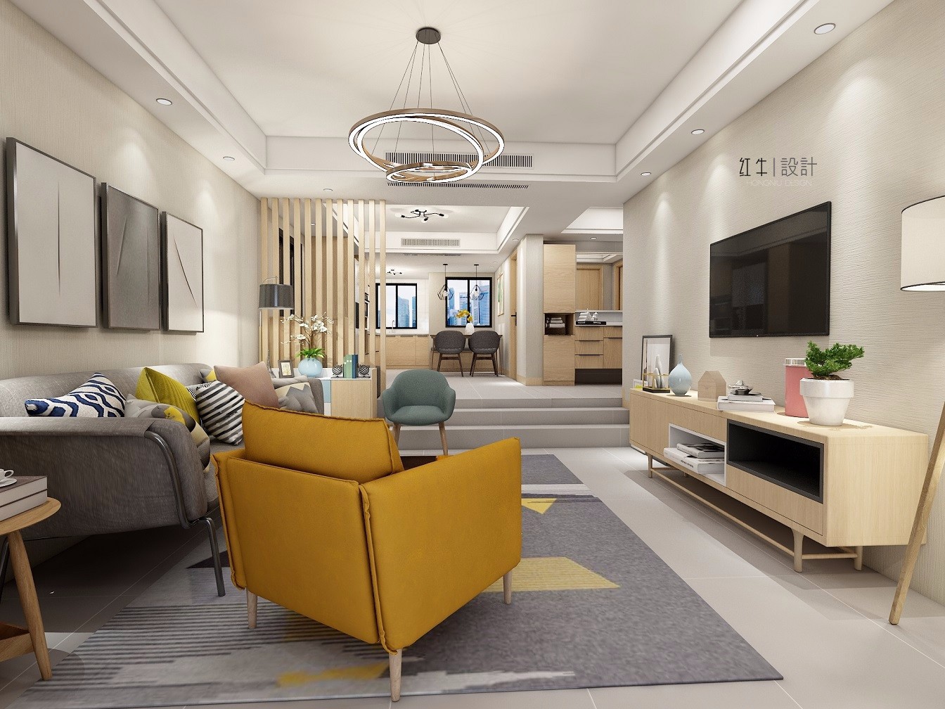 整套方案為北歐風格,以簡潔明快的設(shè)計風格為主調(diào),空間中大膽運用跳躍的色彩,釋放一種心情,品味一種情趣。