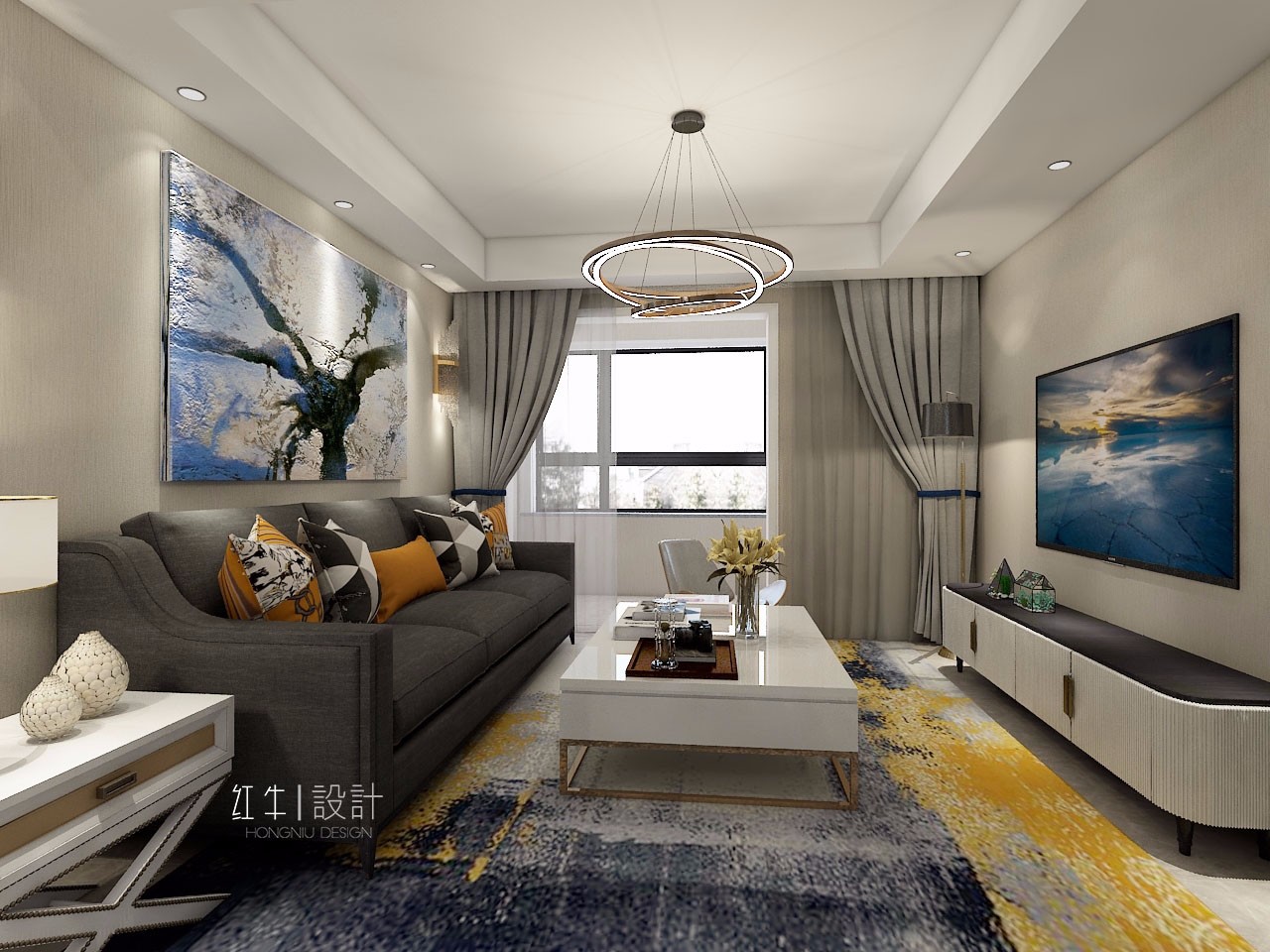 整套方案為北歐風格,以簡潔明快的設(shè)計風格為主調(diào),空間中大膽運用跳躍的色彩,釋放一種心情,品味一種情趣。