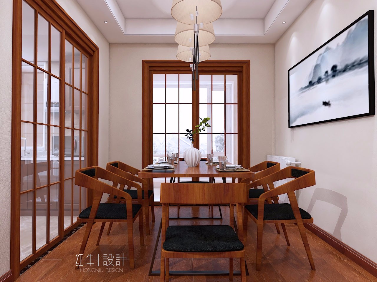 餐廳前面是陽(yáng)臺(tái),旁邊是廚房,都通過(guò)木框透明玻璃門(mén)隔開(kāi),玻璃的通透感讓房間看起來(lái)寬闊明亮了許多。