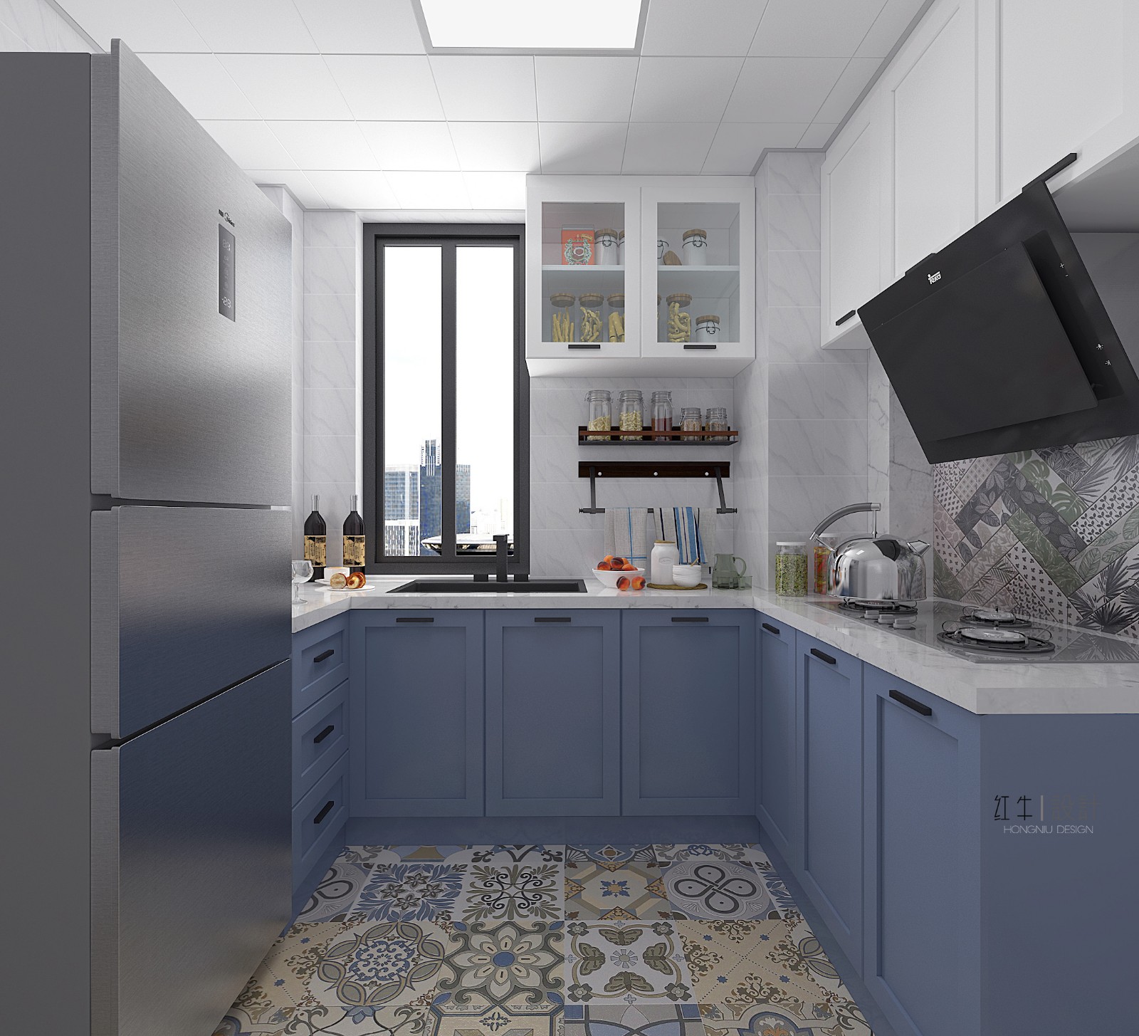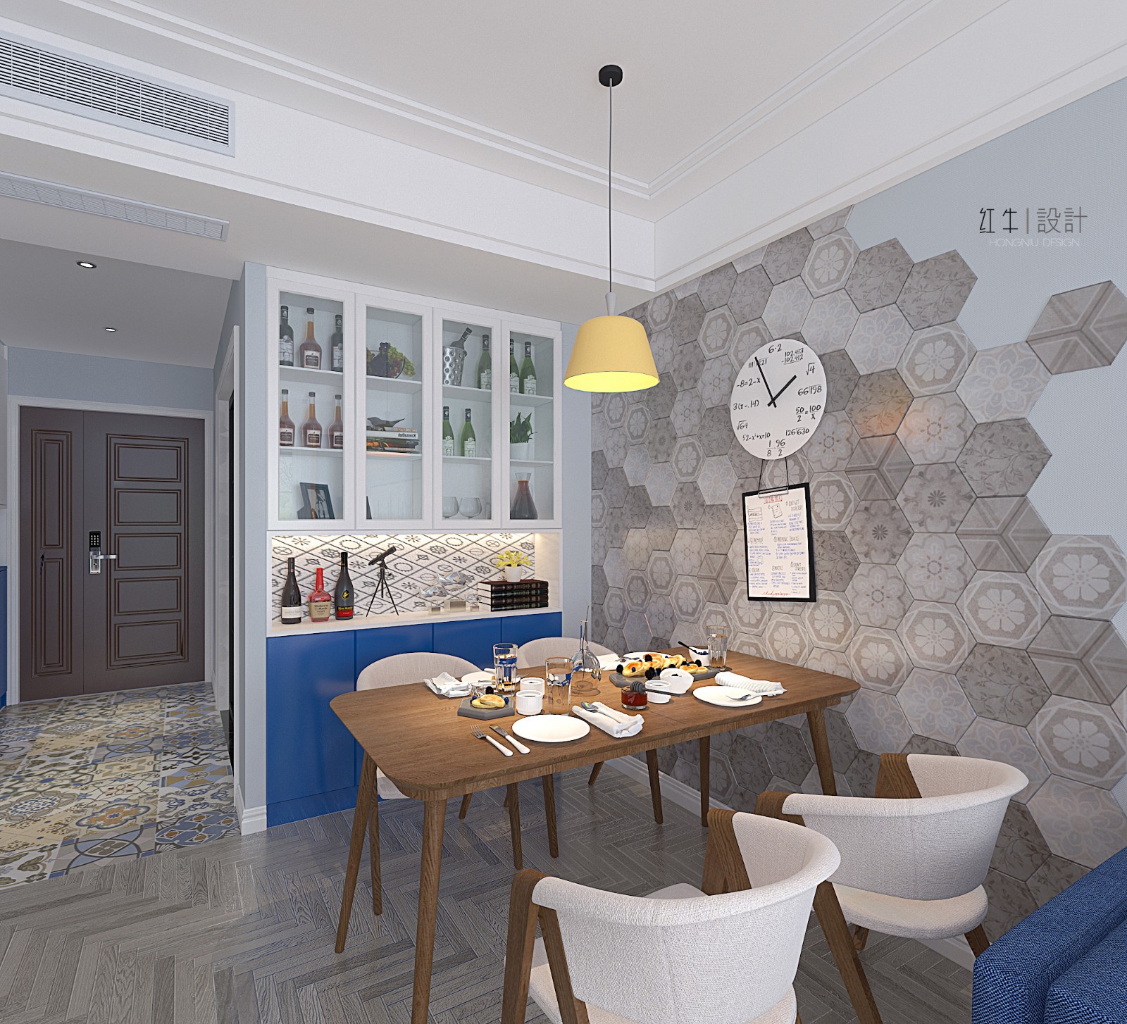 本案業(yè)主是位細心的單身男青年,對空間要求和軟裝顏色很有想法,在兩次的設計交流溝通后,我們定義風格為自由簡約的北歐風格,整體色調為高級的藍灰色。 業(yè)主性格開朗善于交流,希望家也是呈現(xiàn)輕松活潑的狀態(tài),所以在裝飾上,我們選用了一些多邊形足球磚和異形彩色磚。