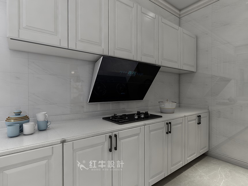 L形操作臺設(shè)計(jì),最大化的釋放了廚房的操作空間,白色櫥柜顯得干凈清爽,在兼具家居空間美感之余,又完美地收納了各類廚房物品。