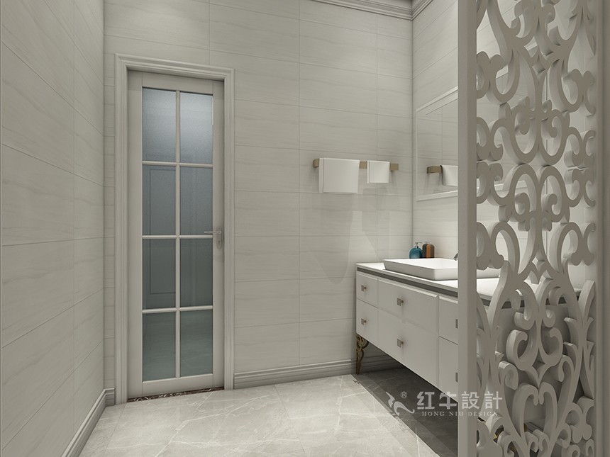 外置的洗手臺讓干濕分離更徹底,同時(shí)提高了衛(wèi)生間的使用效率。鏤空隔斷讓整體空間隔而不斷,別有一番妙趣。
