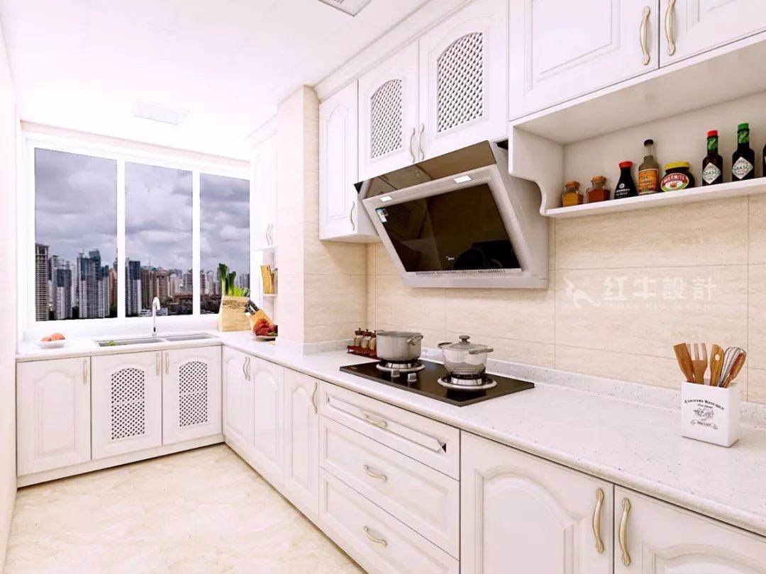 廚房雖然整體呈現(xiàn)出來(lái)的都是白色,但卻并不單調(diào),反而很大程度上體現(xiàn)了簡(jiǎn)歐風(fēng)格的特色。