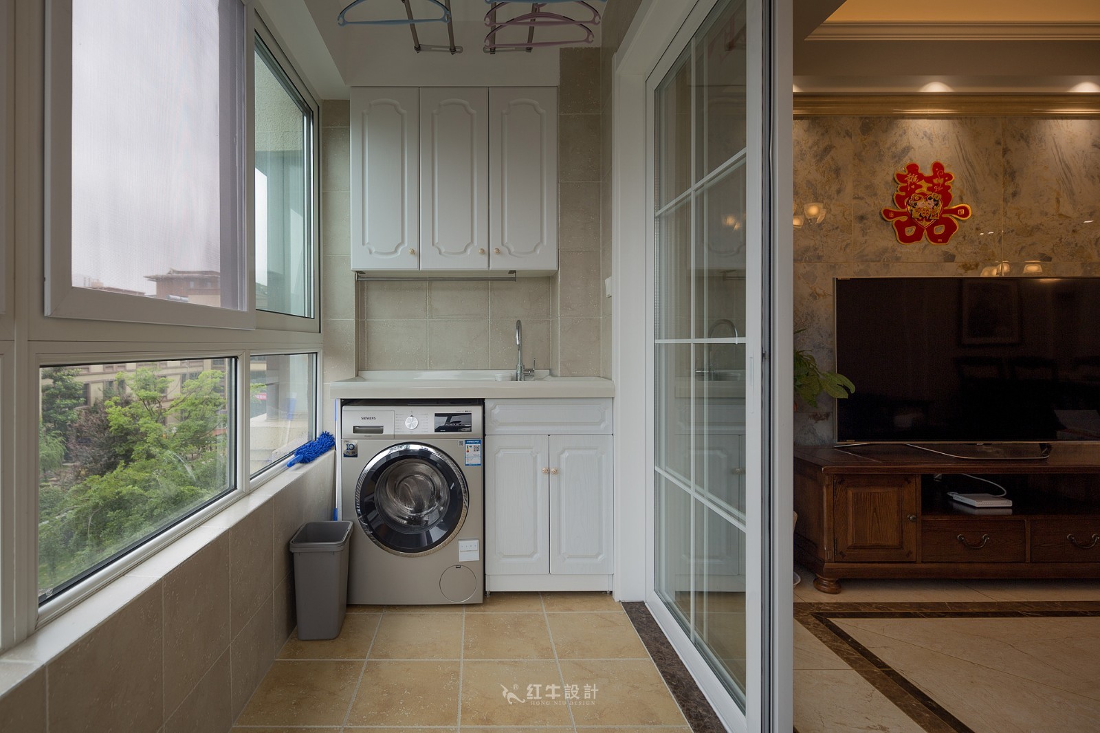定制的陽臺柜,將陽臺空間利用最大化,底部放洗衣機,上方做吊柜,增加了很多收納空間。裝上龍頭水槽更加方便使用,偶爾還可以在陽臺上清洗東西。
