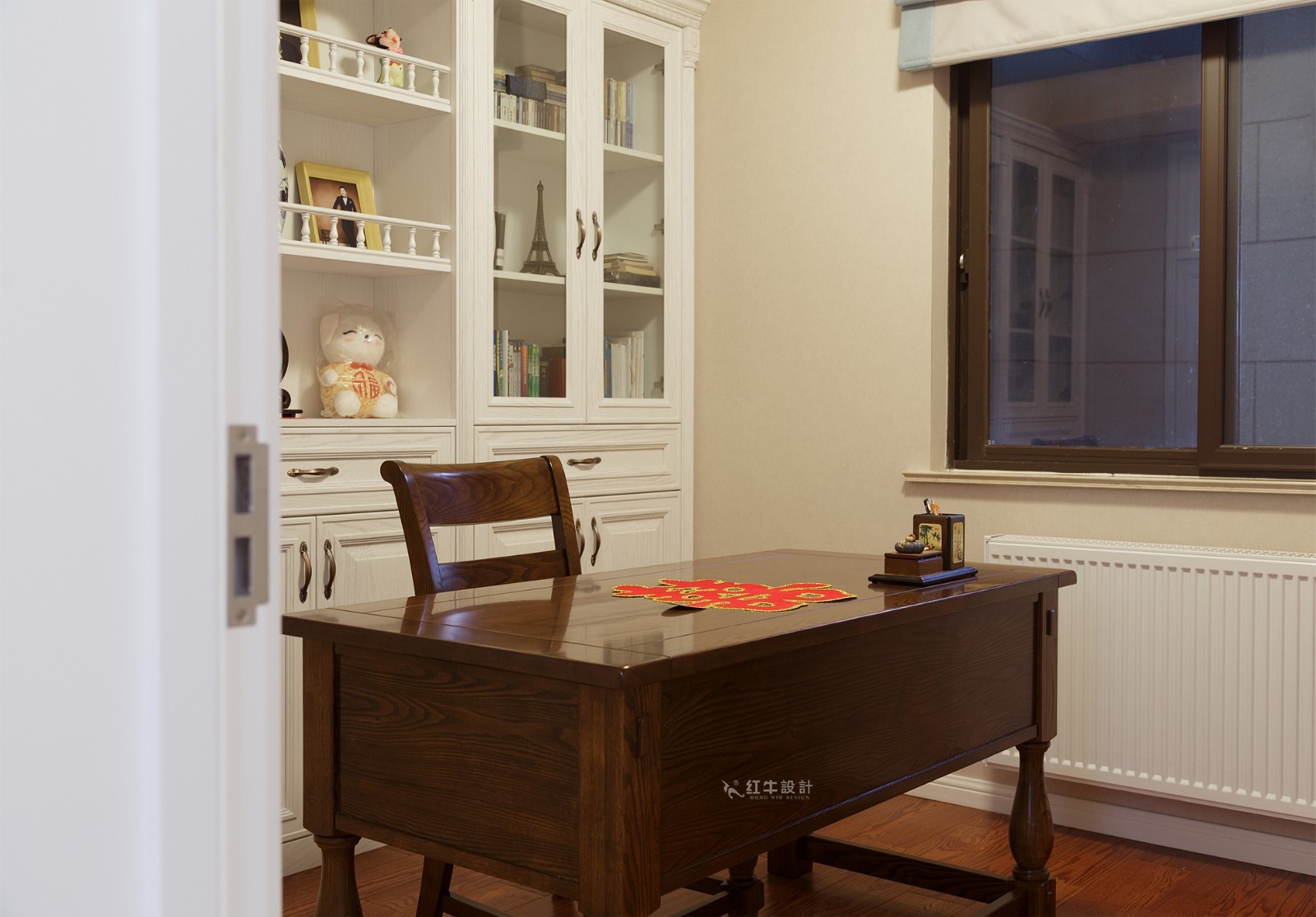 書房光線充足、配色明亮、家具樣式簡潔、物品適量,顯得非常簡潔干練。