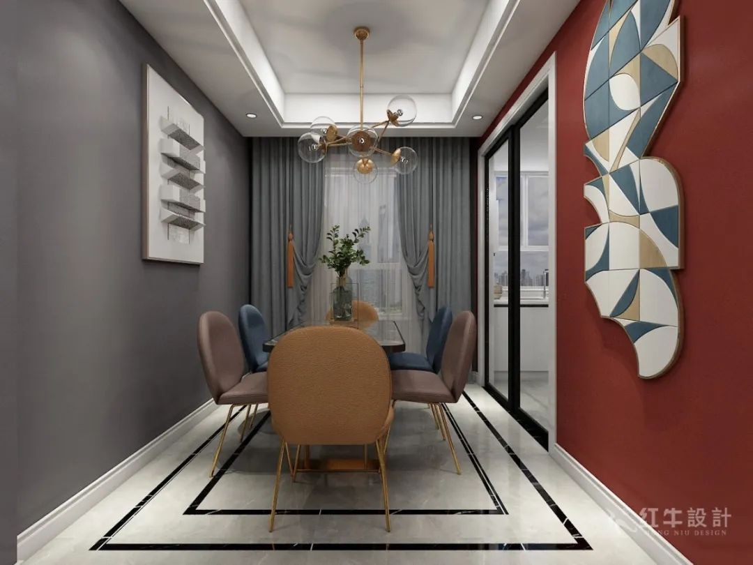 大面積鮮艷顏色的碰撞,使空間層次更加多樣,充滿活力又不失高級(jí)。