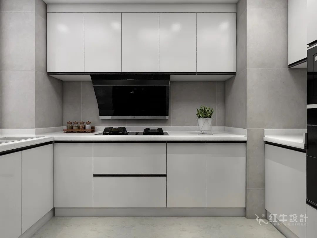 但有一個(gè)小缺點(diǎn),就是廚房較小,喜歡下廚的業(yè)主,可以考慮從其他地方拓展空間。