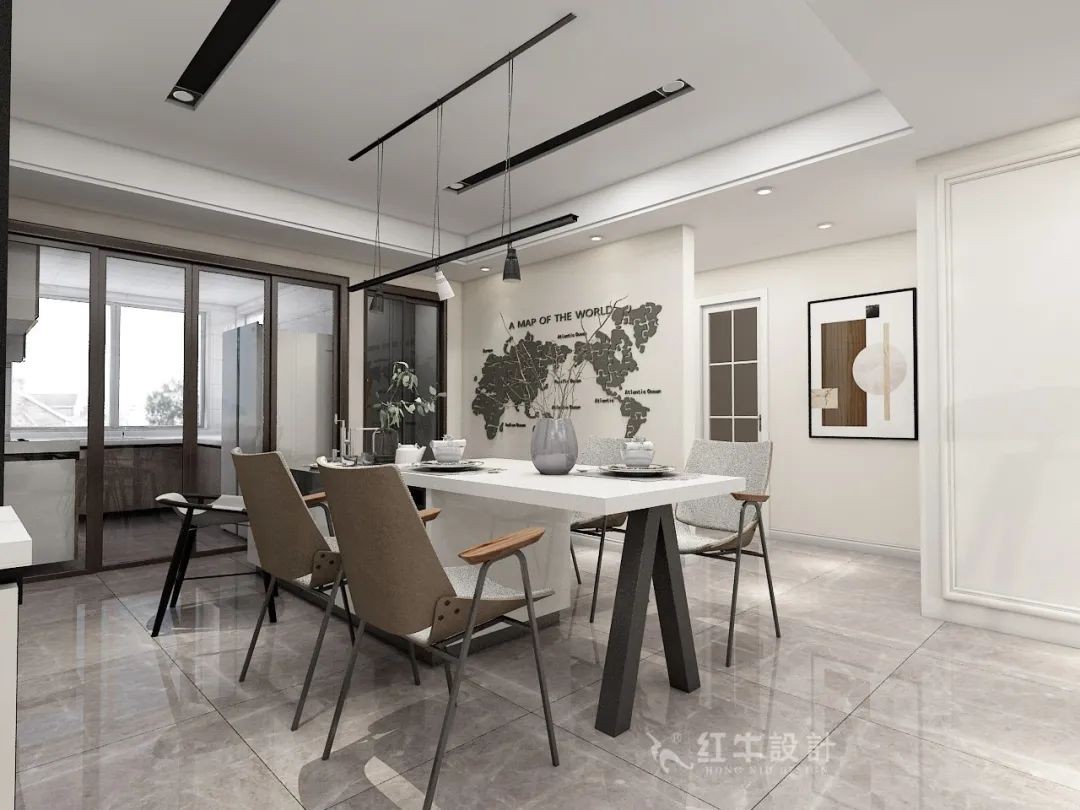 餐廳墻面涂刷了一幅世界地圖,極具個性。