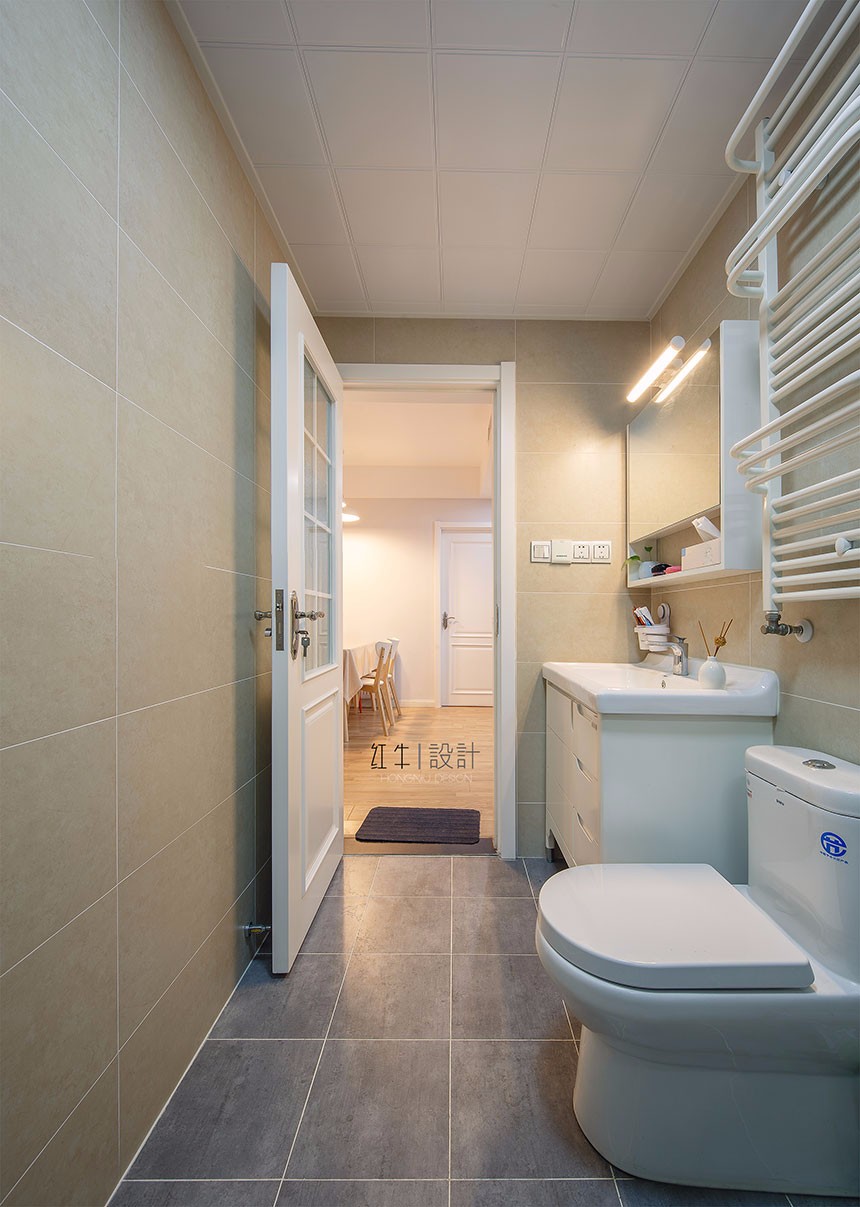 1.首先墻體改動比較大的就是廚房衛(wèi)生間,把廚房的小陽臺給衛(wèi)生間用了,這樣可以有一個(gè)獨(dú)立的淋浴間了,衛(wèi)生間整體就比較規(guī)整