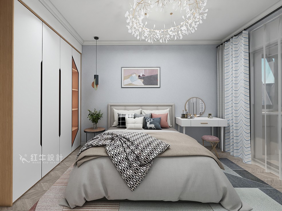客餐廳色調清雅,休閑、隨性又不失精致,電視背景墻沒有過多的華麗修飾,給空間本身一個開拓、延展性,給居住者一個慵懶、明快的起居環(huán)境。主臥次臥,依靠北歐風格家具本身的線條感,搭配同樣風格的裝飾畫,給人以休閑自在的視覺感受。