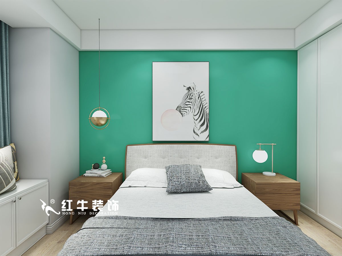 本案以輕松愉悅的現(xiàn)代風(fēng)設(shè)計(jì)感與溫馨家的氛圍為出發(fā)點(diǎn),客廳運(yùn)用暖灰色調(diào)墻面,與深色家具形成鮮明對(duì)比,著重空間視覺(jué)重點(diǎn)。私密區(qū)域,次臥運(yùn)用孔雀藍(lán)作為背景,床頭一側(cè)的小吊燈,不對(duì)稱的設(shè)計(jì),不拘一格。主臥暖色乳膠漆搭配灰色的衣柜,顯得空間溫馨舒適又具有足夠的儲(chǔ)藏空間。整體營(yíng)造現(xiàn)代風(fēng)與溫馨家的氛圍。