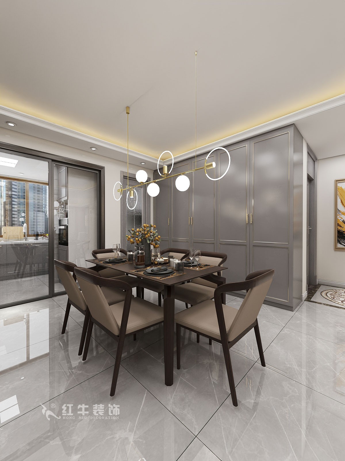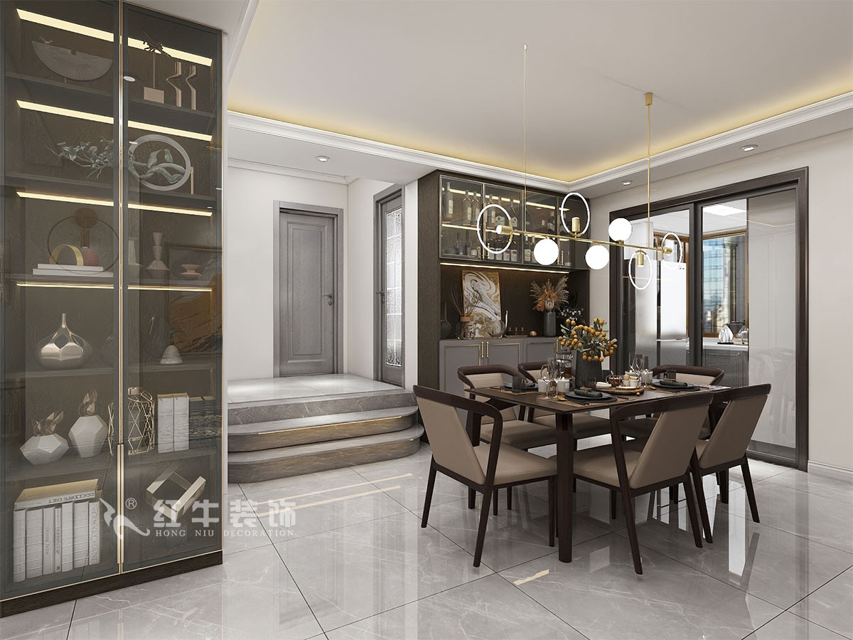在整個房屋平面布置上餐廳區(qū)域做了很大大的改動,將入戶的的小儲物間和餐廳的小儲物間全部拿掉,還餐廳一片整潔;把原有的廚房空間往后壓縮,原來閑置的后陽臺納入廚房里面,這樣調(diào)整下來,整個餐廳很干凈整潔又增加了收納空間。輕奢是一種優(yōu)雅的生活態(tài)度,包涵奢華的氣質(zhì)內(nèi)涵;整體裝修的硬裝部分以流行灰色為主色,在優(yōu)雅之上稍加的金屬線條裝飾,形成了自然而極致的家居風(fēng)格。