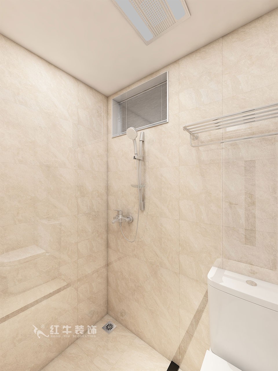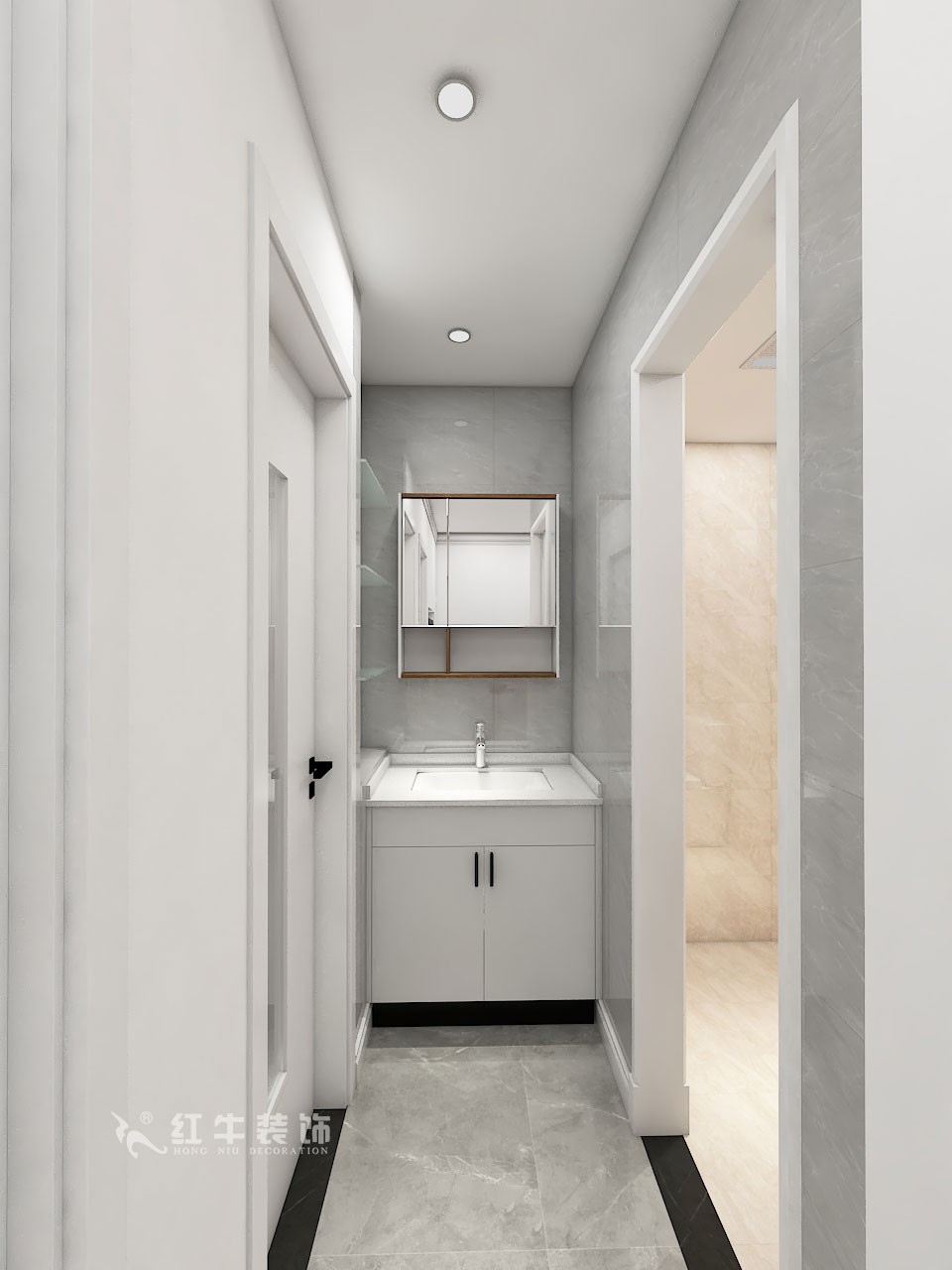 本案設(shè)計(jì)業(yè)主老人及孫女同住,年齡跨度較大,所以采用白墻,木色的現(xiàn)代風(fēng),兩代都適合。地面灰色瓷磚,亮度不受影響。墻面木色背景墻增加溫馨的感覺(jué)。鏡面點(diǎn)綴使空間得以延伸。