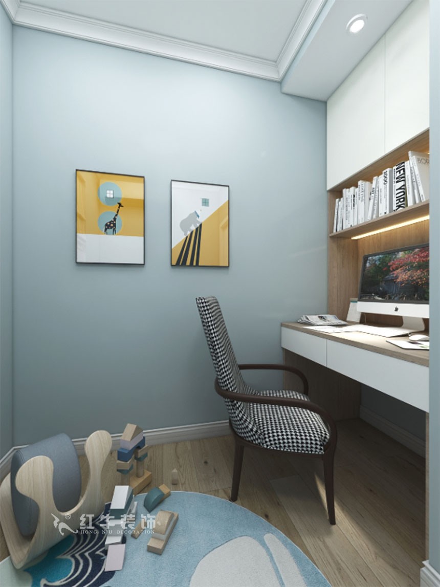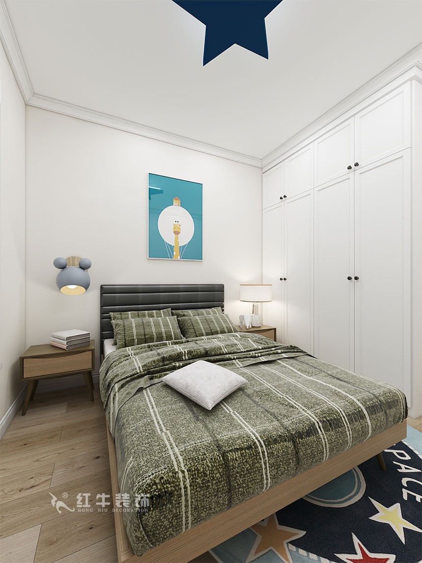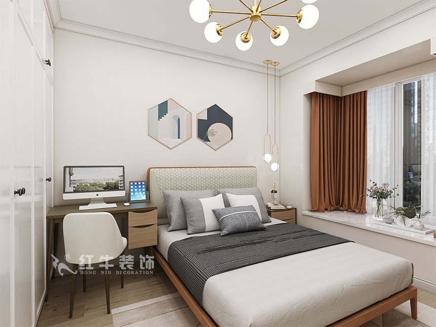 整體風(fēng)格簡(jiǎn)約,白色和木紋色營(yíng)造出溫馨的生活氣息,次臥室設(shè)計(jì)了組合柜,既有學(xué)習(xí)的區(qū)域同時(shí)也兼顧了休閑空間。