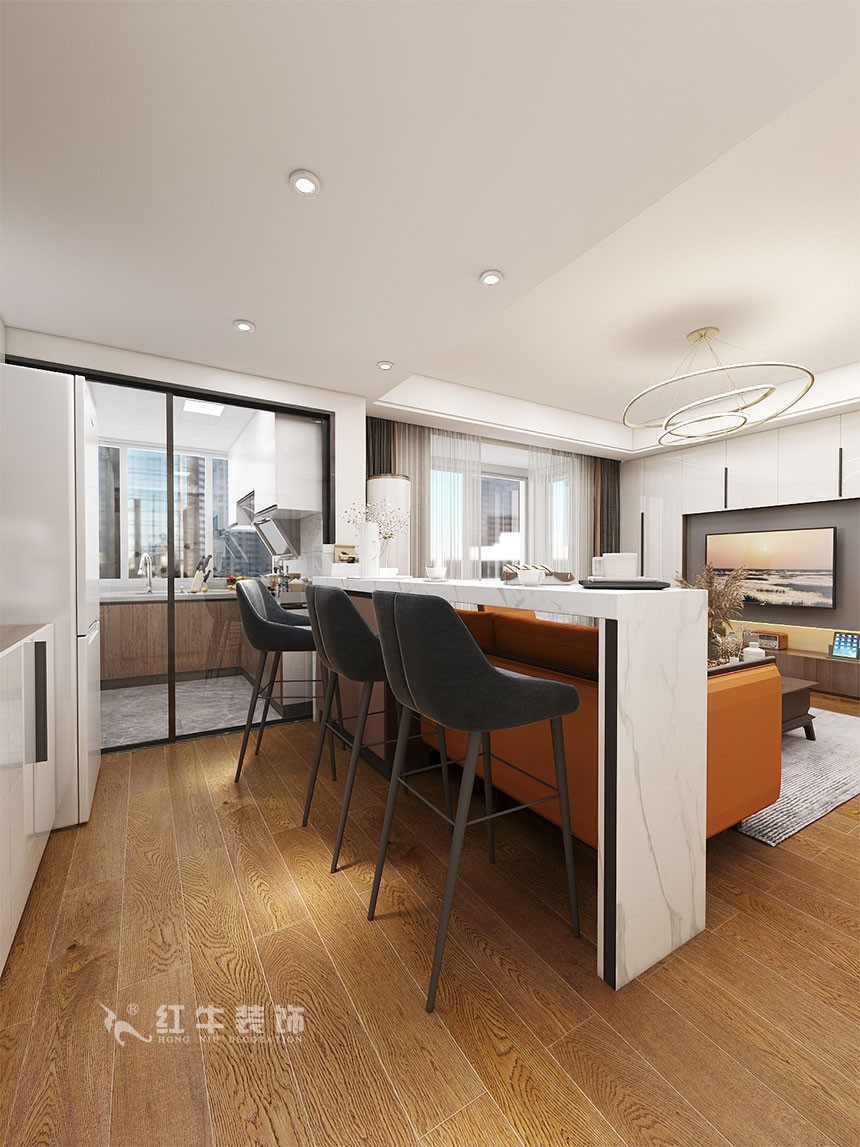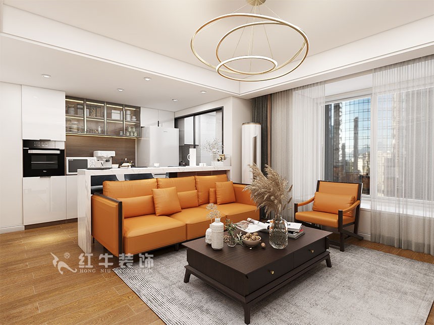 沙發(fā)不要靠墻,這樣設(shè)計(jì)才夠別致?。櫨阓東城水岸115㎡現(xiàn)代風(fēng)格_3室2廳1衛(wèi)_舊房裝修_全包17萬)03