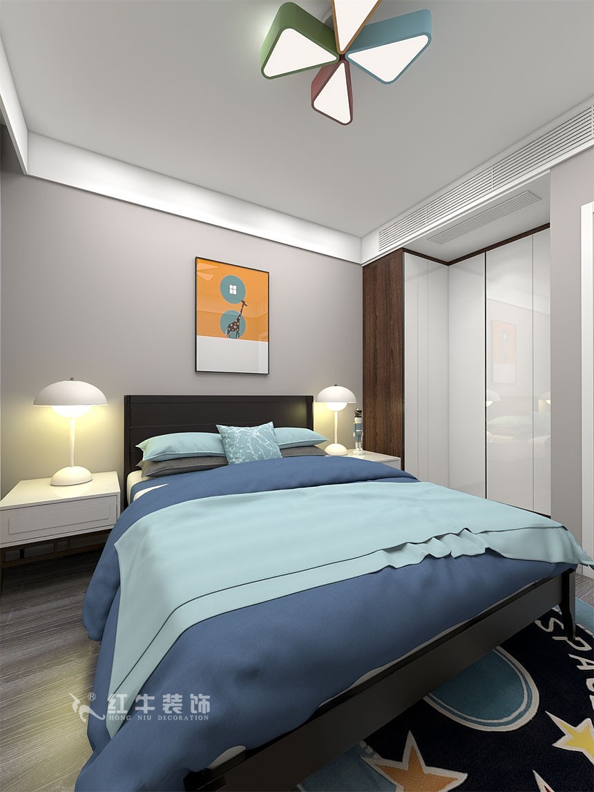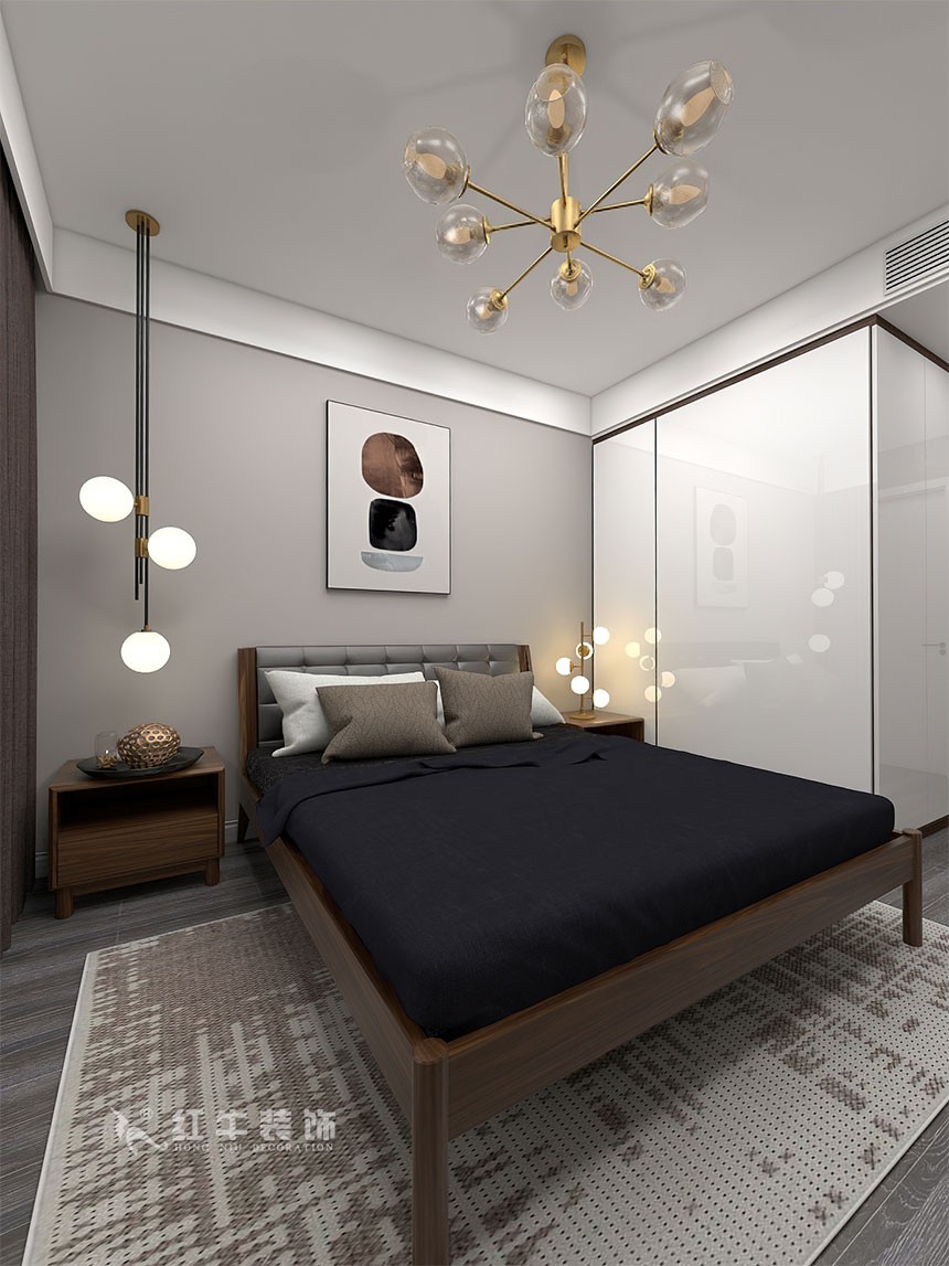 客餐廳色調(diào)統(tǒng)一又不失精致,電視背景墻沒有過多的華麗修飾,給空間本身一個(gè)開拓、延展性,給居住者一個(gè)慵懶、明快的起居環(huán)境。主臥次臥,依靠現(xiàn)代風(fēng)格家具本身的線條感,搭配同樣風(fēng)格的裝飾畫,給人以休閑自在的視覺感受。書房是辦公空間,臨窗處以整面墻的衣柜來做處理,搭配榻榻米設(shè)計(jì),給了本就不大的空間一個(gè)視覺的開放性,心情也自然就舒緩很多。