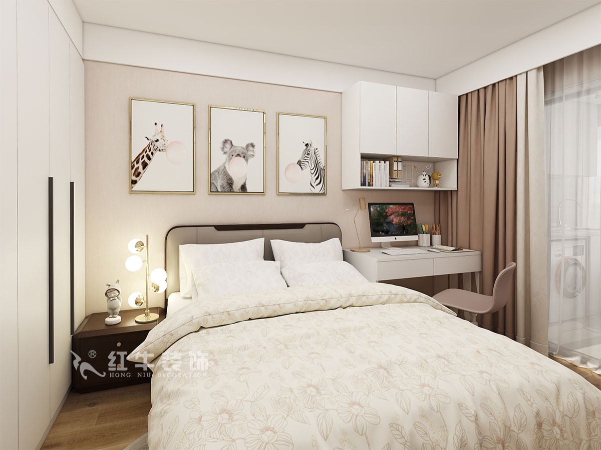 客餐廳色調(diào)統(tǒng)一又不失精致,電視背景墻沒有過多的華麗修飾,給空間本身一個(gè)開拓、延展性,給居住者一個(gè)慵懶、明快的起居環(huán)境。主臥次臥,依靠現(xiàn)代風(fēng)格家具本身的線條感,搭配同樣風(fēng)格的裝飾畫,給人以休閑自在的視覺感受。書房是辦公空間,臨窗處以整面墻的衣柜來(lái)做處理,搭配榻榻米設(shè)計(jì),給了本就不大的空間一個(gè)視覺的開放性,心情也自然就舒緩很多。