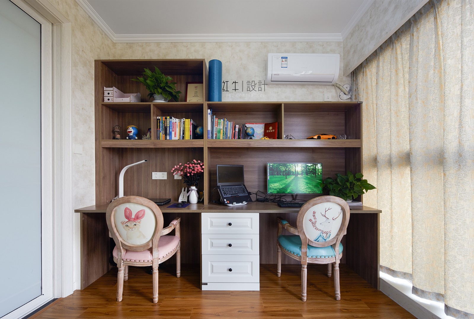 在看過(guò)實(shí)地現(xiàn)場(chǎng)后,我們對(duì)整體布局進(jìn)行了規(guī)劃,原始南陽(yáng)臺(tái),寬度縮小,使得客餐廳的面積擴(kuò)大,北邊兩露臺(tái),改造成一個(gè)臥室,一個(gè)書房,使得功能區(qū)域跟豐富合理。主臥室面積偏小,沒(méi)有安排大尺寸的儲(chǔ)物柜,主臥衣柜功能放到書房,而書房整面的書桌書架,又滿足了IT夫妻雙人辦公的需求。
