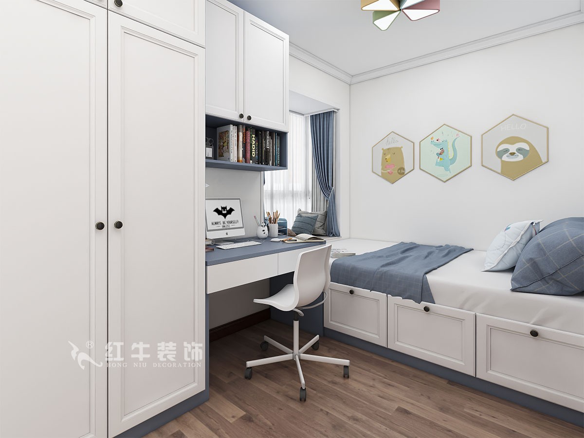 客餐廳色調(diào)統(tǒng)一又不失精致,依靠現(xiàn)代中式風(fēng)格家具本身的線條感,搭配同樣風(fēng)格的裝飾畫,給人以休閑自在的視覺感受。兒童房臨窗處書桌加衣柜來做處理,搭配榻榻米設(shè)計(jì),給了本就不大的空間一個(gè)視覺的開放性,心情也自然就舒緩很多。