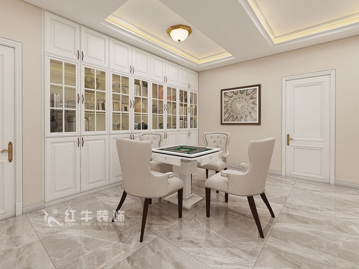 此房屋裝修規(guī)劃是以后期業(yè)主家庭聚會(huì)的房子,業(yè)主對(duì)美要求有自己的見(jiàn)解,希望未來(lái)的房子有顏色,有氣質(zhì),最終確定了美式,而本案在設(shè)計(jì)時(shí)其特色是將設(shè)計(jì)的元素、色彩、照明、原材料都體現(xiàn)美式的大氣,但是對(duì)材料的色彩質(zhì)感要求很高。因此,無(wú)論總墻面,還是頂面都用美式線條做裝修,配合家具的曲線,讓整個(gè)空間顯得柔美。