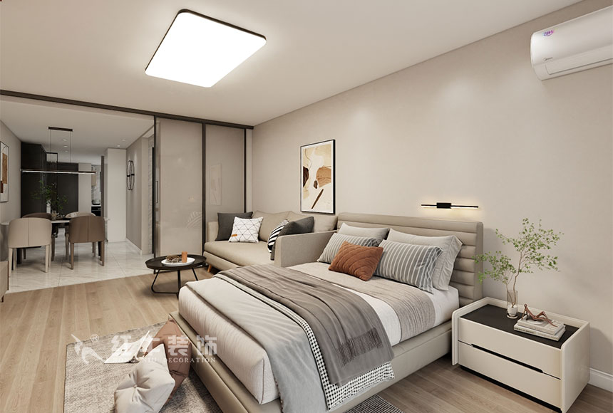 主臥室簡(jiǎn)單顯主人家的生活細(xì)致,閱讀燈的點(diǎn)綴更添氛圍,整體的風(fēng)格及色彩的運(yùn)用都是使空間更顯舒適輕松安靜的氛圍,放松、愉悅。